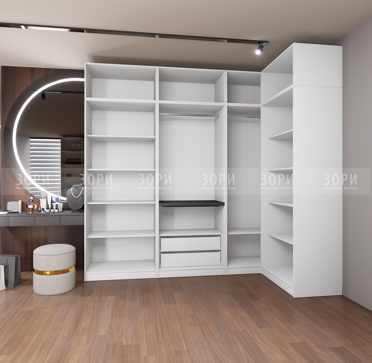 Dress ъглов Гардероб без врата - ъглов модул