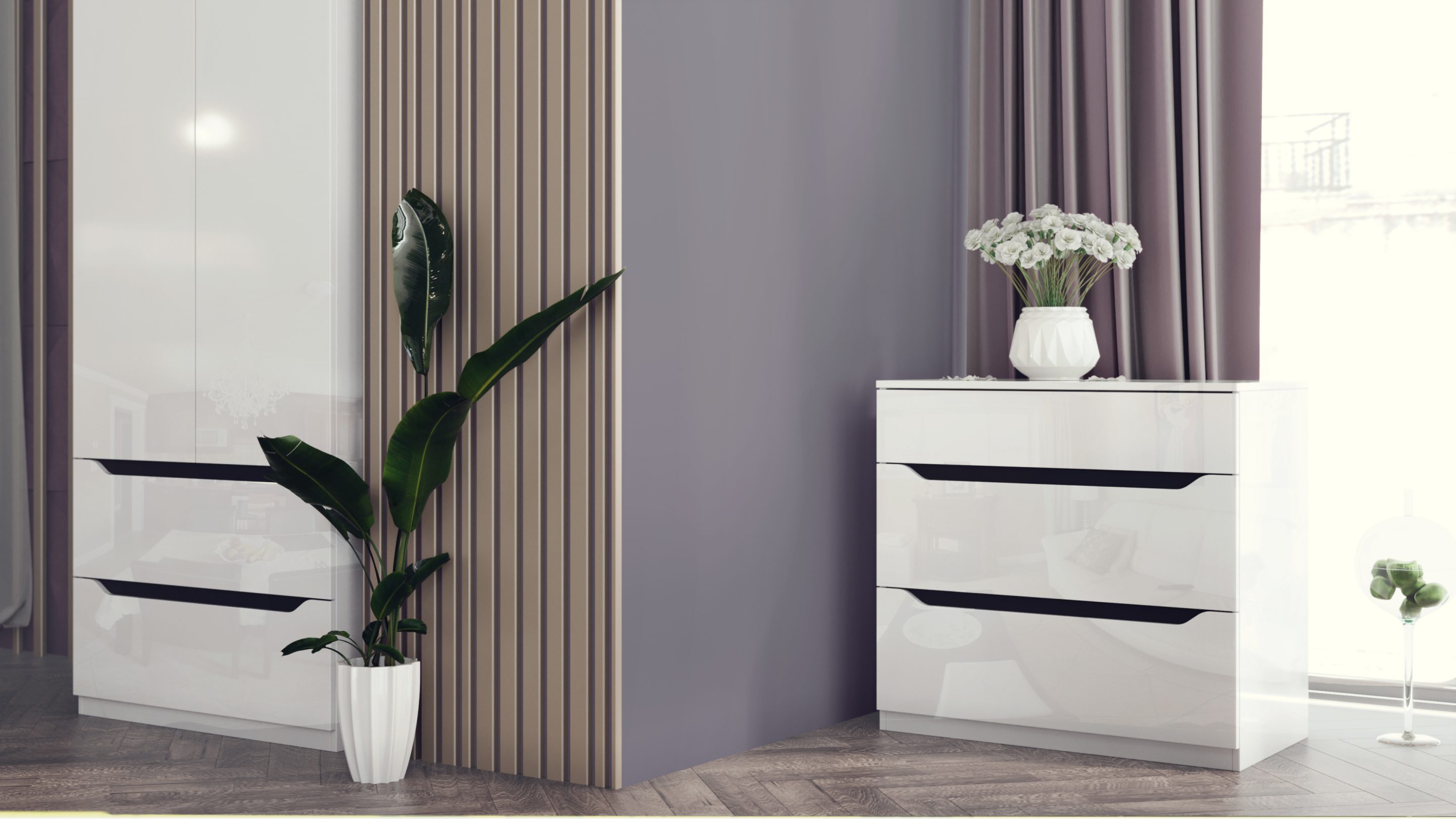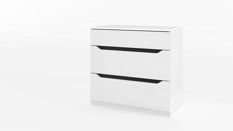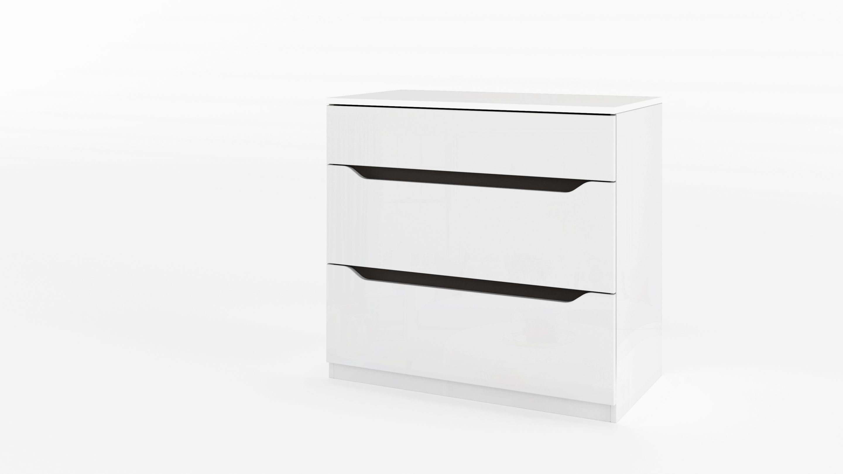 Скрин с три чекмеджета от колекция за обзавеждане на спалня и юношеска стая Аляска, изработен от ПДЧ с дебелина 18мм в бял гланц и графит.
