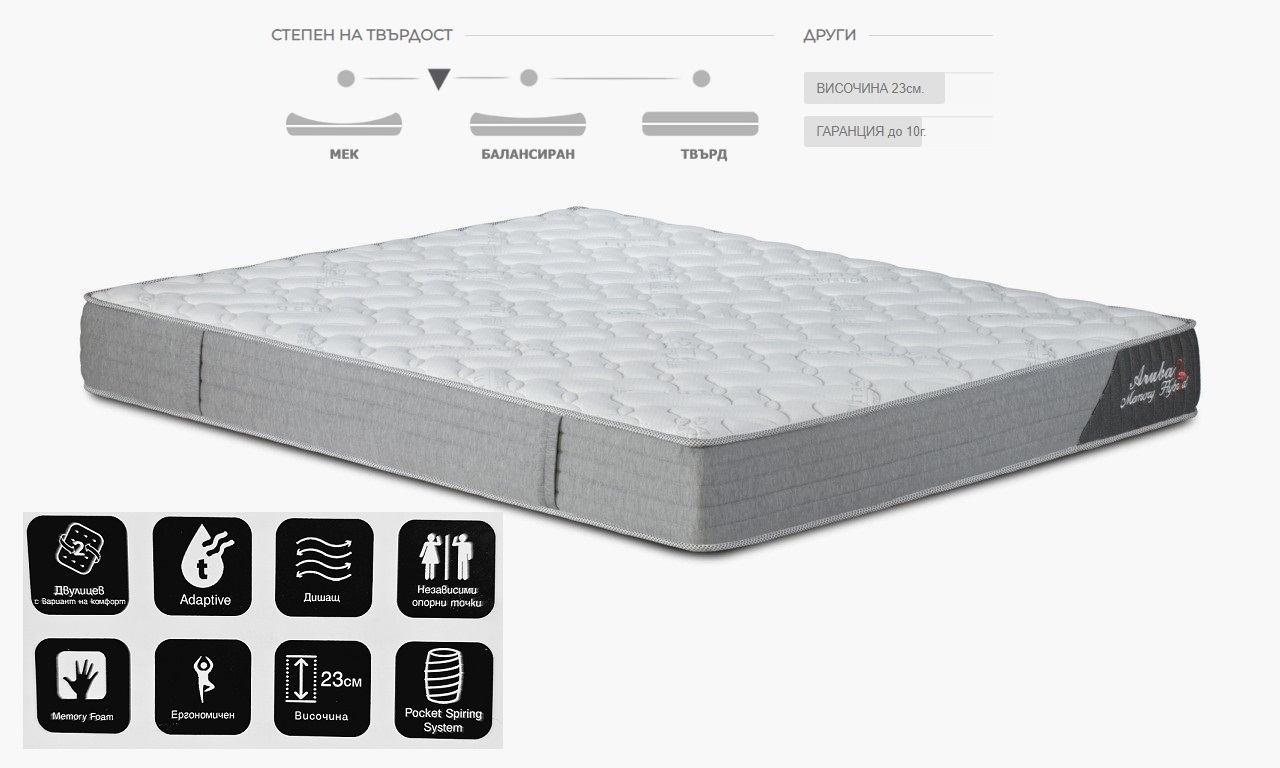АРУБА МЕМОРИ ХИБРИД е стъпка към перфекционизиране на съня към по– консервативно и традиционално настроените ползватели все още предпочитащи пружинни модели матраци.