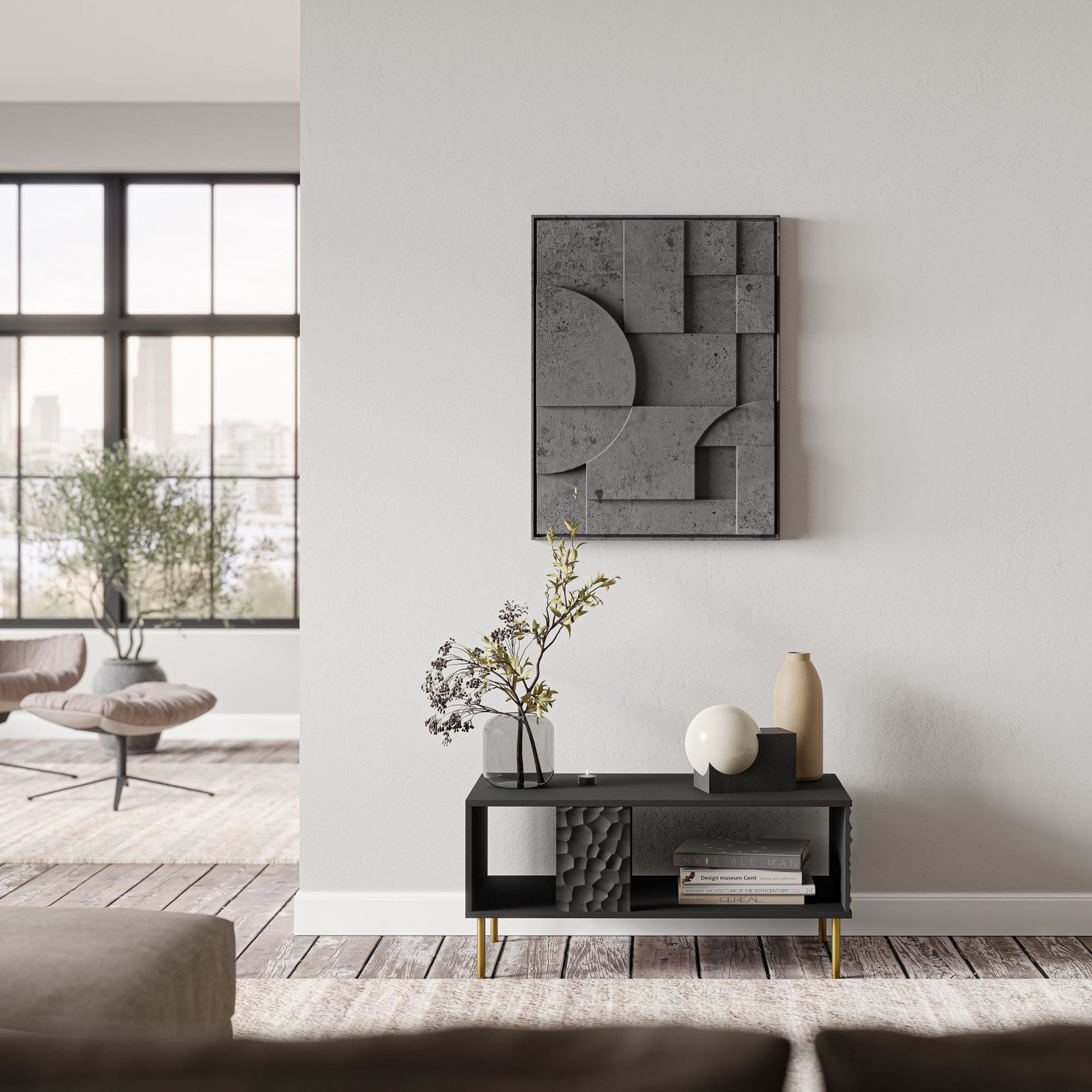 Колекция Bullet e елегантен и стилен начин да освежите интериора си. Мебелите са изработени от ПДЧ в черен цвят, МДФ с 3D декор и метални крака в цвят злато, които правят всичко да изглежда много елегантно и луксозно.