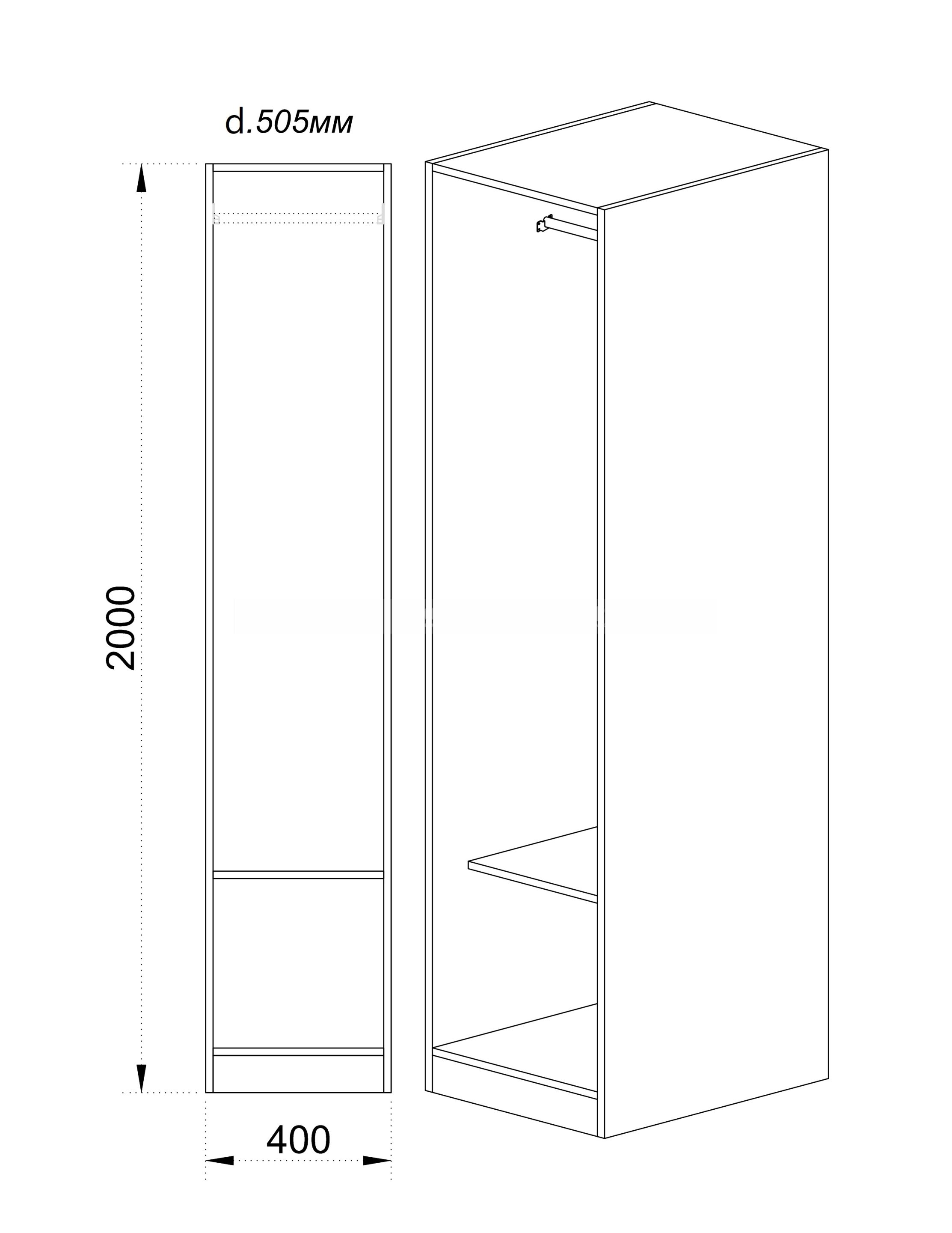 Dress 40 е отворен корпус на гардероб, изработен от ПДЧ с дебелина 16 мм в цвят бяло фладер. Размер: 40/50,5/201 см.