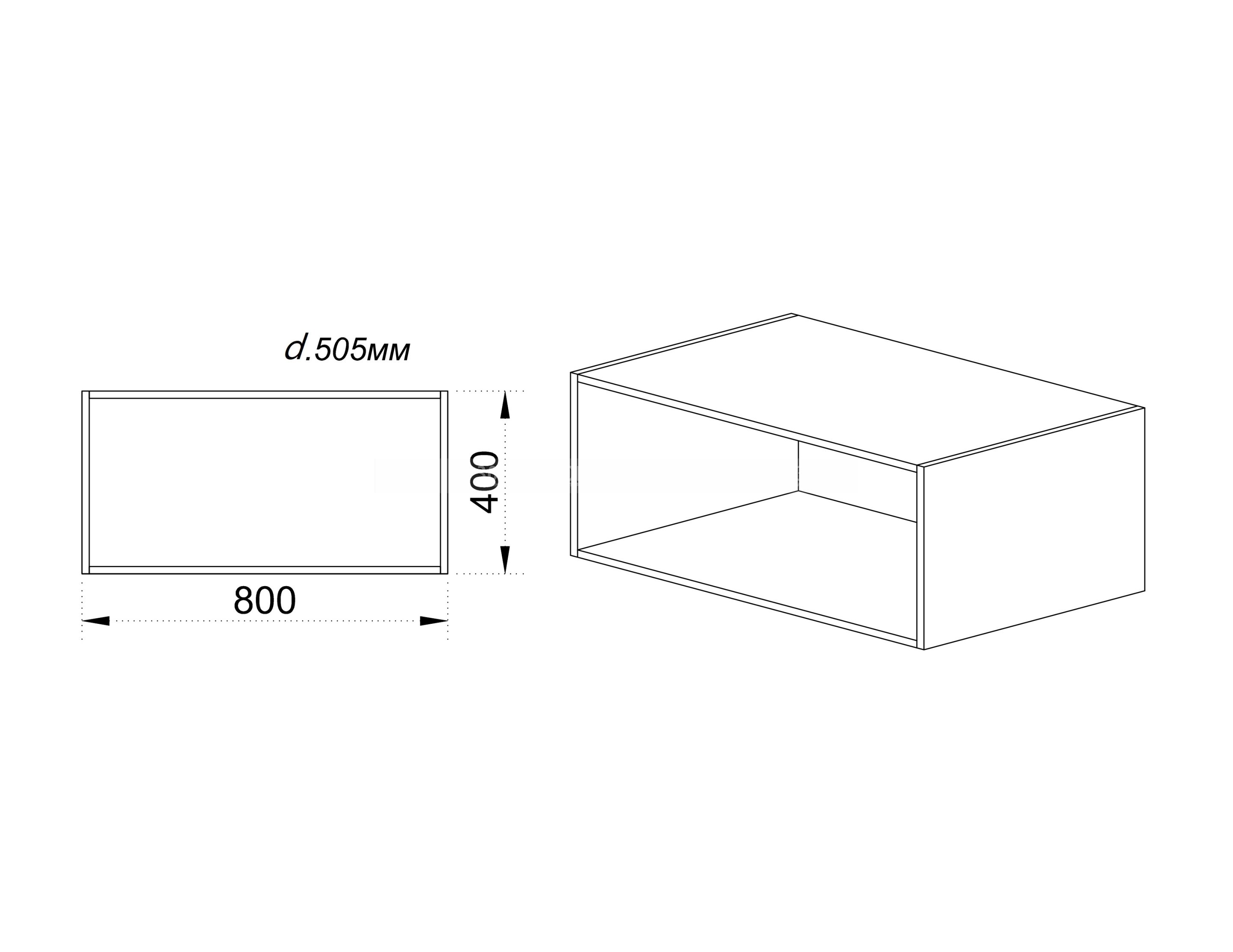Dress 80 е отворен корпус на надстройка, изработен от ПДЧ с дебелина 16 мм в цвят бяло фладер. Размер: 80/50,5/40 см.