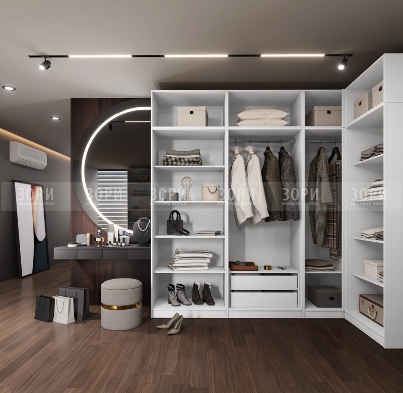 *Dress е система за модулни гардероби и гардеробни. С нея можете да съставите всякакъв вид отворен или затворен дрешник благодарение на многобройните модули и варианти за подредба и визия.
