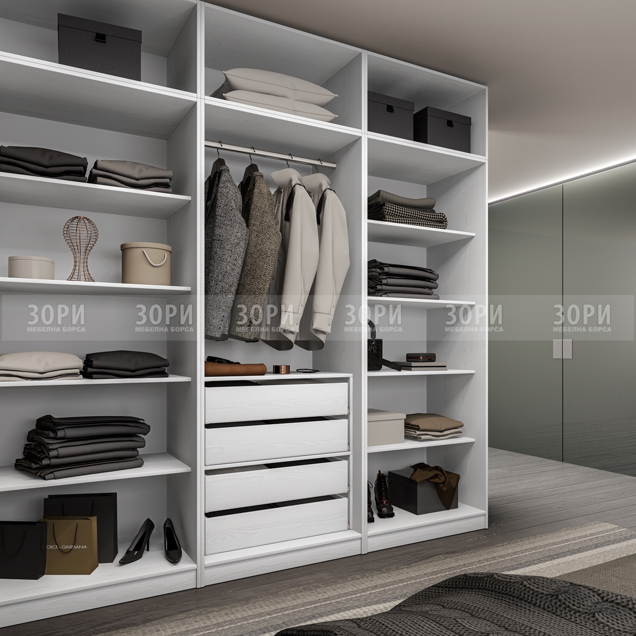 *Dress е система за модулни гардероби и гардеробни. С нея можете да съставите всякакъв вид отворен или затворен дрешник благодарение на многобройните модули и варианти за подредба и визия.