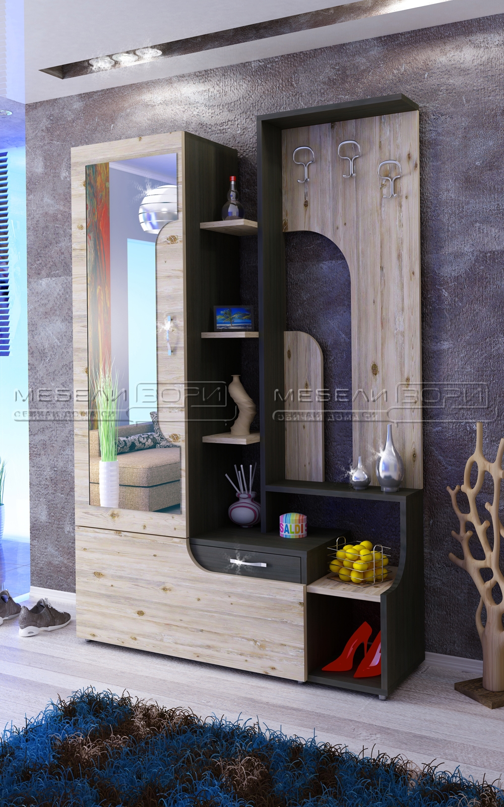 Порманто Сохо е изработено от ПДЧ с дебелина 18 мм в цвят босфор и сохо. Размер: 120/37.5/194 см.