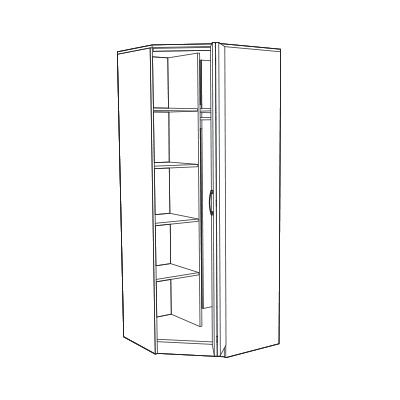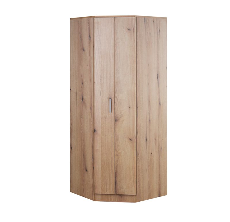 Гардероб за ъгъл Фортуна FU с две врати е функционален гардероб с пет рафта и лост за закачалки. Изработен от ПДЧ с дебелина 18мм, Soft form на вратите, механизми Hettich, алуминиеви релси, метални дръжки, врати тип хармоника. Предлага се в цветове: Артисан, Дъб крафт бял, Дъб сонома. Размер: 75/52/222 см.