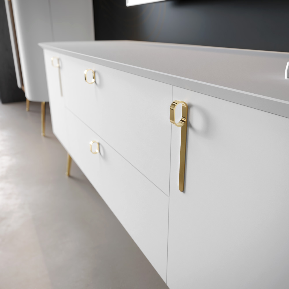ТВ шкаф Galet, изцяло боядисан с бял матов UV лак, с две врати и чекмеджета: