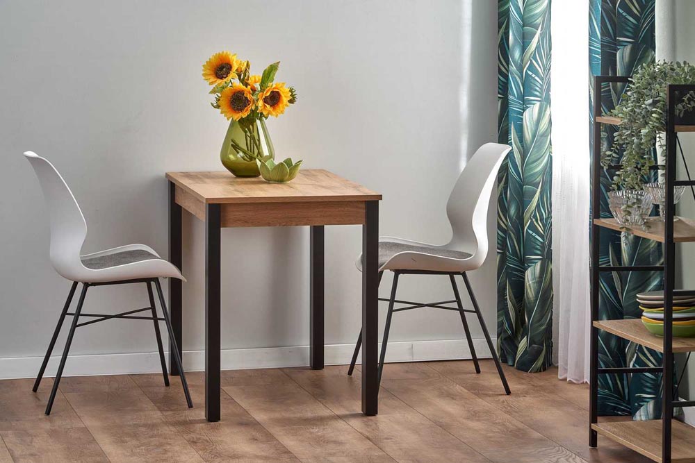 Разтегателна трапезна маса с функционален размер 100-135/60/75, изработена от ПДЧ в цвят дъб вотан и черен.