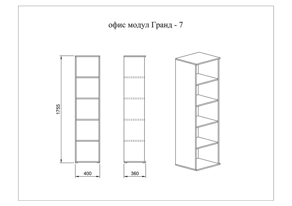 Етажерка с четири рафта от Колекция Гранд. Изработена от ПДЧ с дебелина 16мм в цвят сонома арвен. Размер: 40/36/175.5 см.