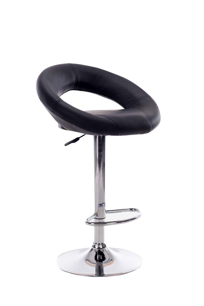 Бар стол с хромиран крак и седалка в черна кожа. Има механизъм за повдигане. Размер: 54/48/80-102.