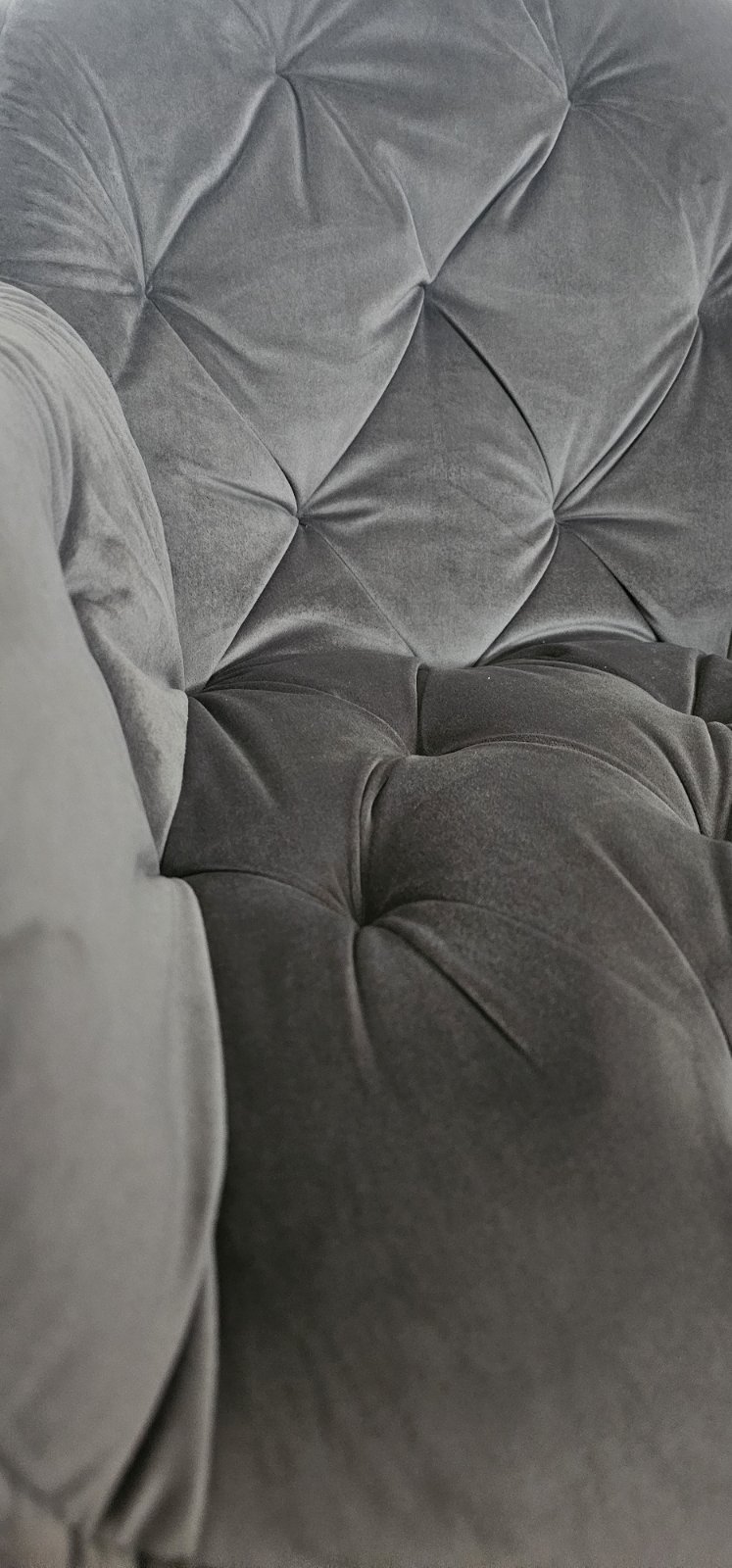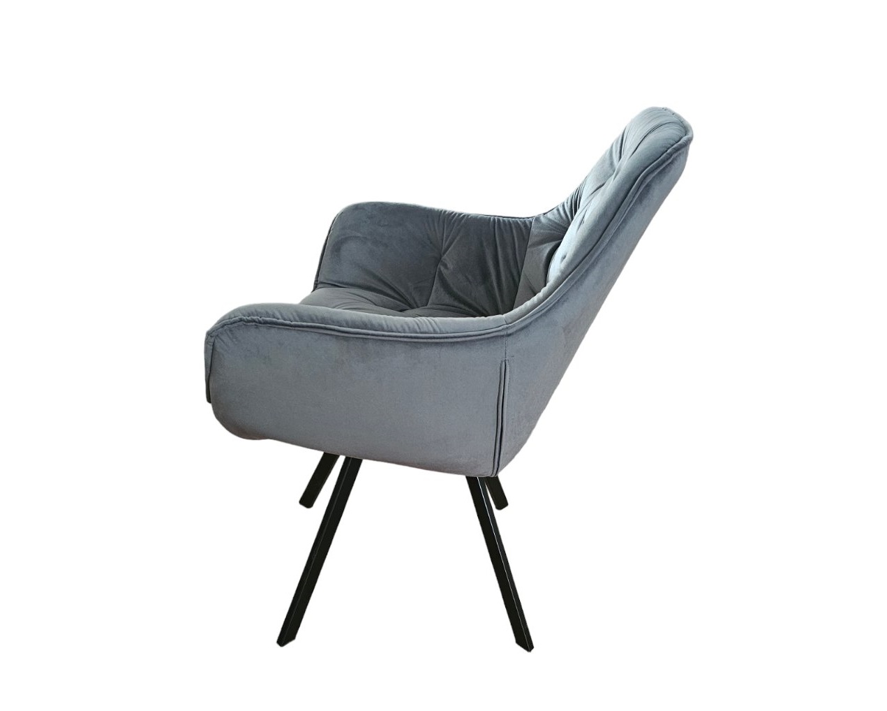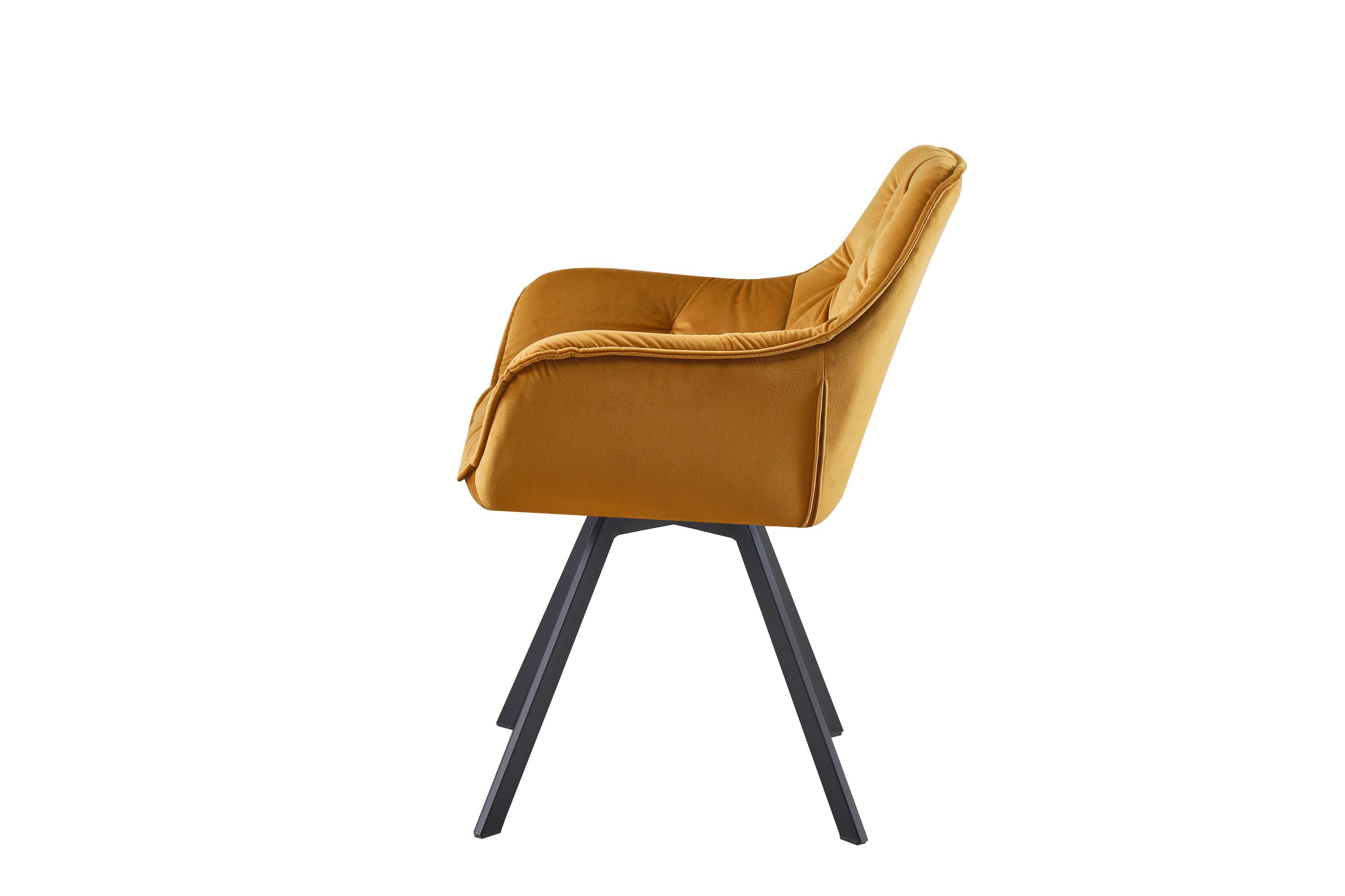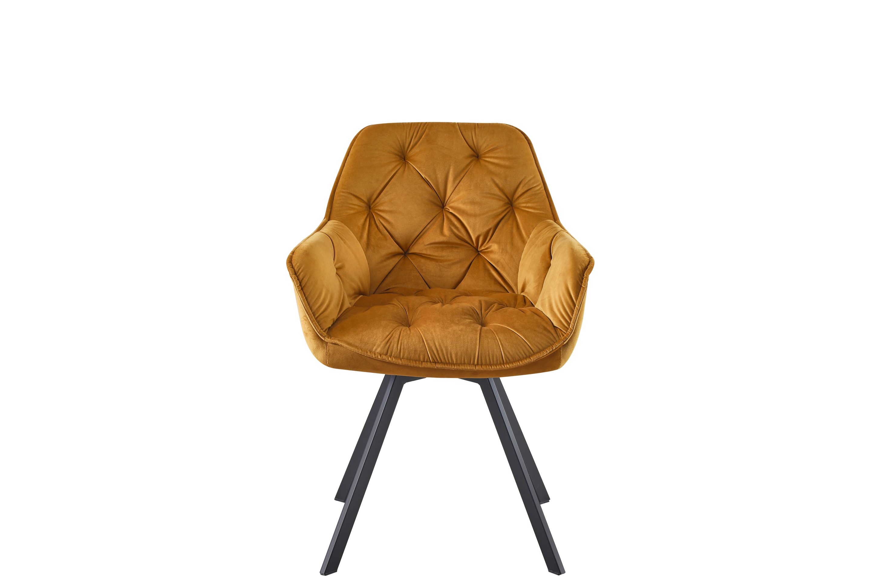Трапезен стол с метални крака в черен цвят и дамаска в сиво или горчица с размер 62/58/86 см.