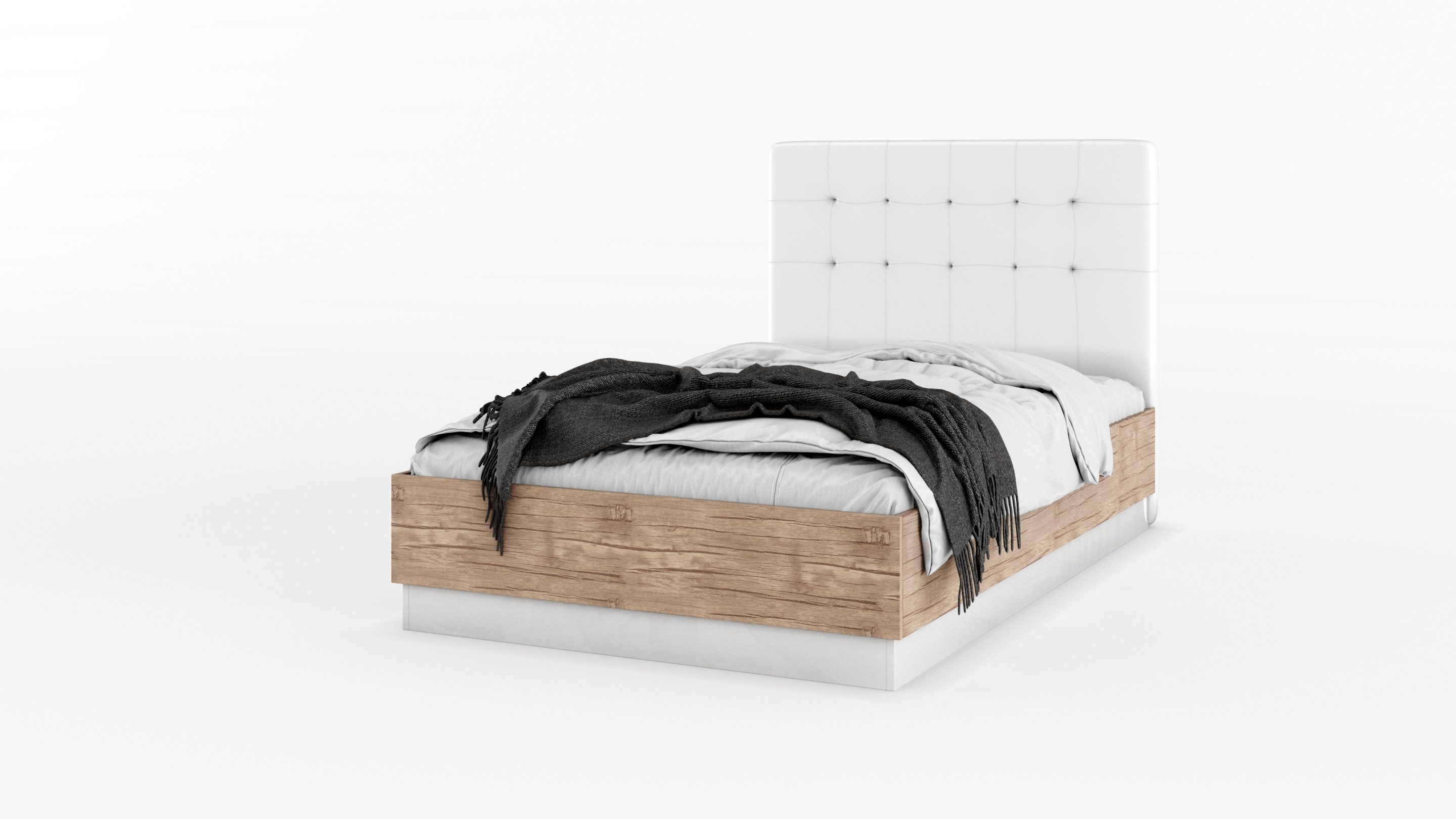 Легло с повдигащ механизъм и тапицирана табла (бяла еко кожа) за матрак 120/200: 126/210/115 см;