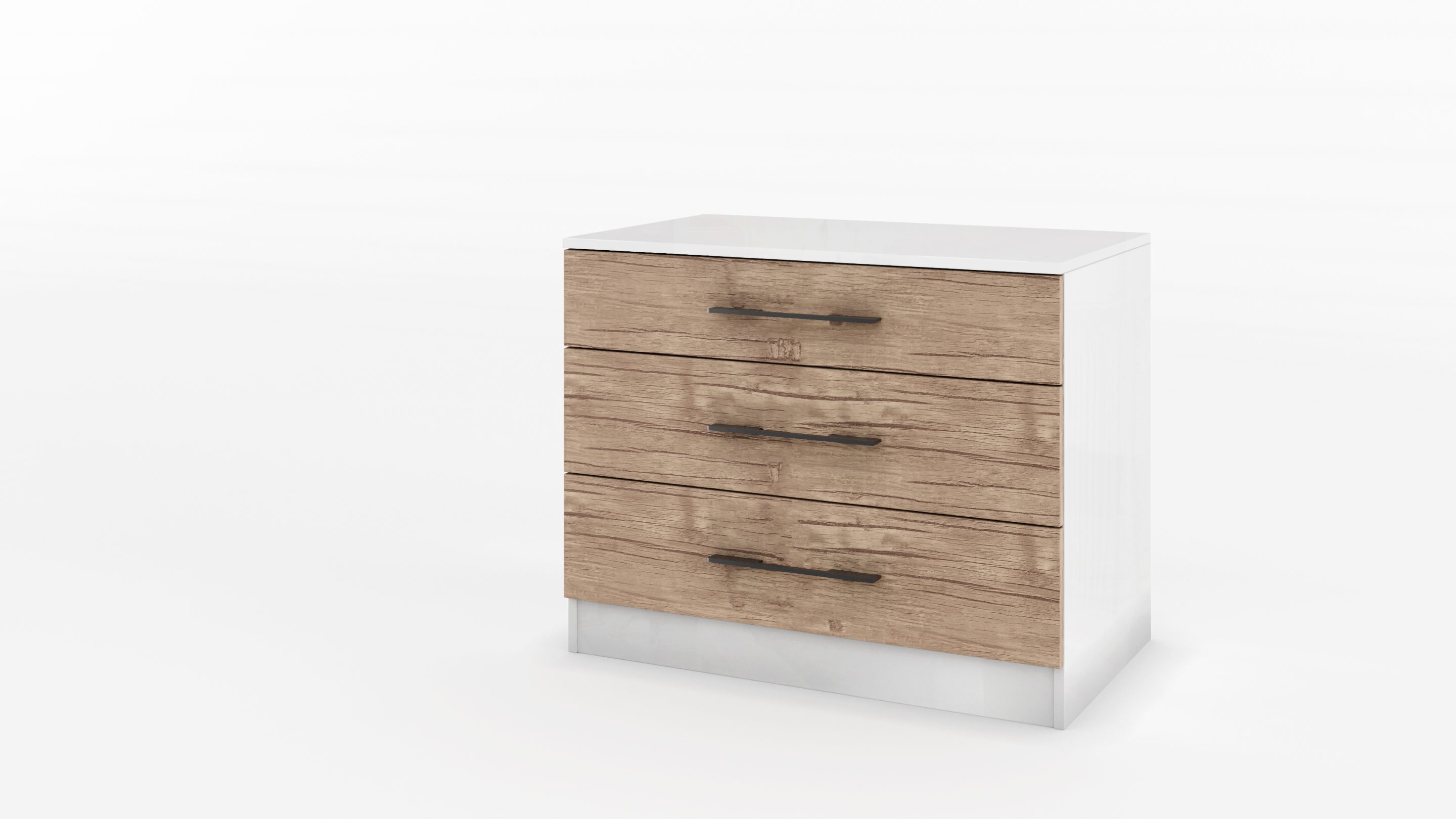 Изработено е от ПДЧ с дебелина 18 мм в цвят бяло гланц и антик.