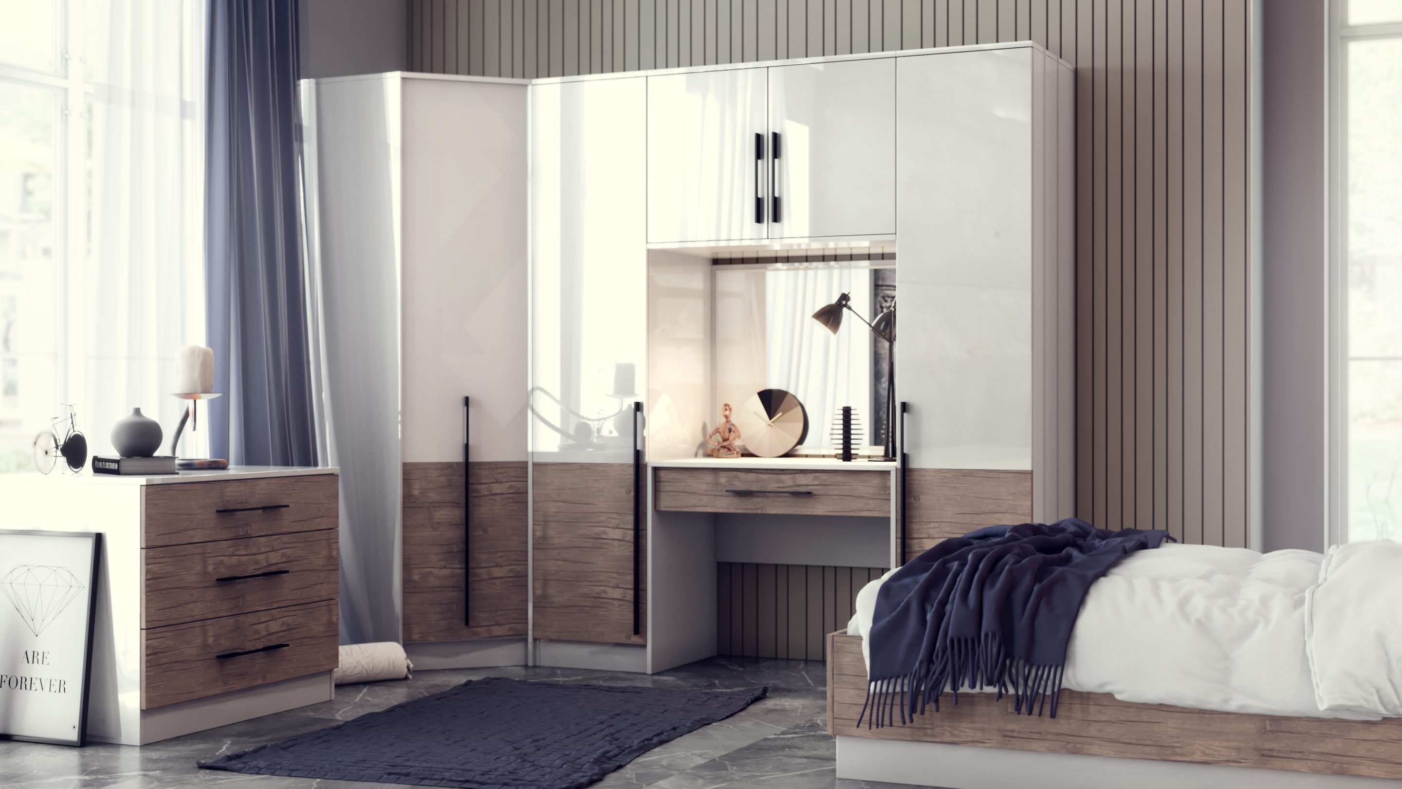 Ъглов гардероб с 4 рафта – 89/89/207 см;