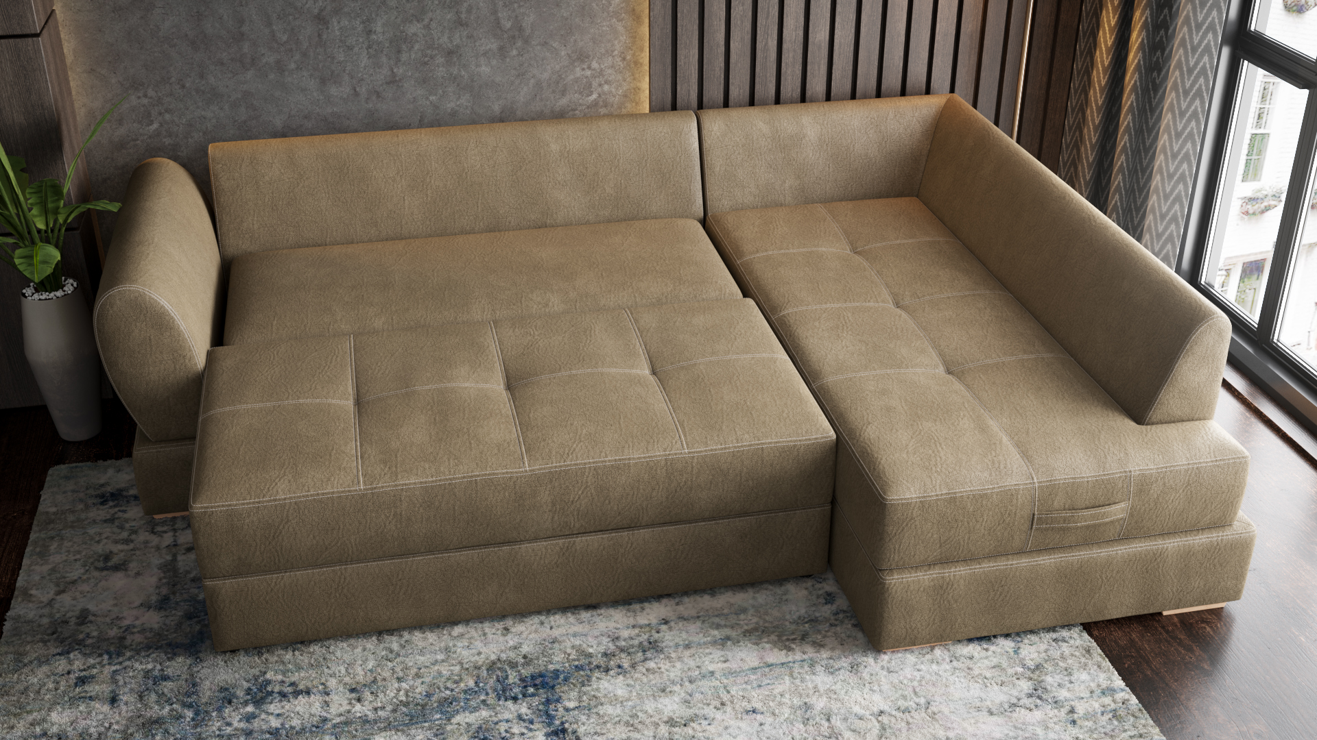 Холов ъгъл Камино с функция сън - механизъм PUMA, изключително надежден и удобен за ежедневна употреба. Диванът е с различен дизайн и нова технология за изработване на възглавници, изработен е със зиг-заг пружини, висококачествен дунапрен и устойчив плат Barington taupe. Има ракла и тапициран гръб.