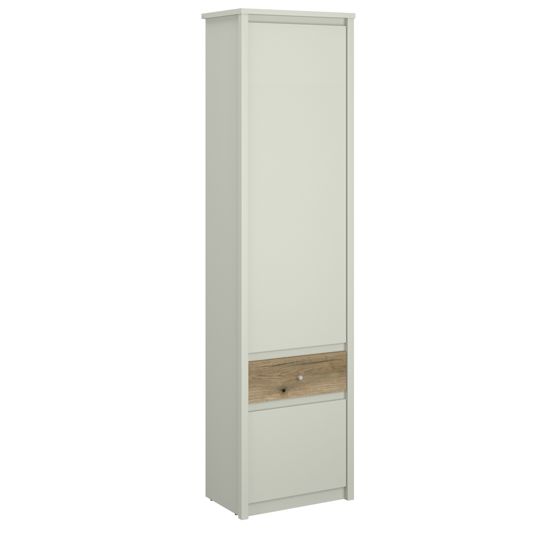 Шкаф с две врати и чекмедже от Колекция Karin. Изработена от ПДЧ в комбинация от топли цветове кашмир и дъб евок. Размер: 56/36,5/210.5 см.