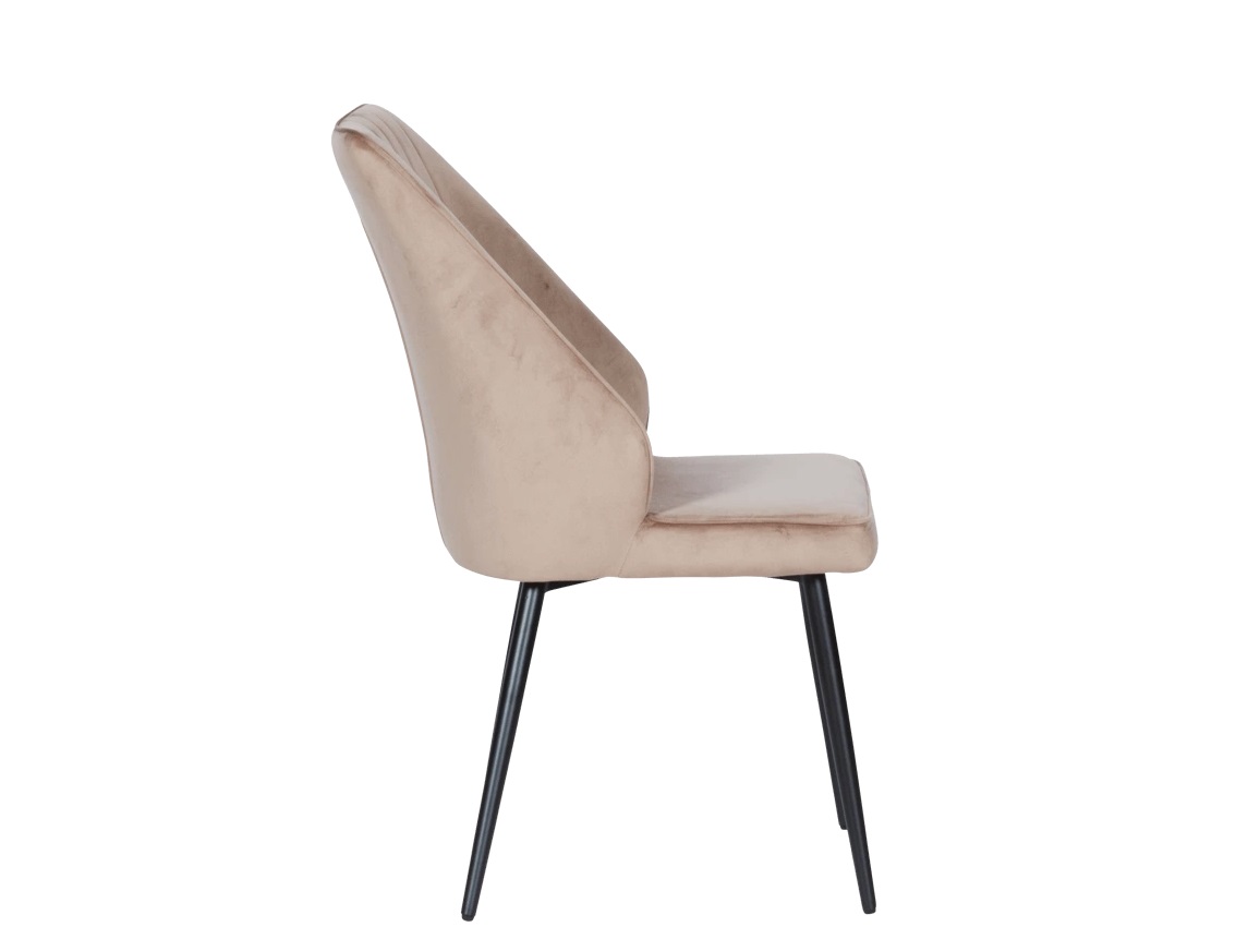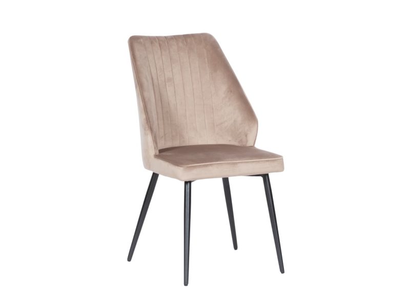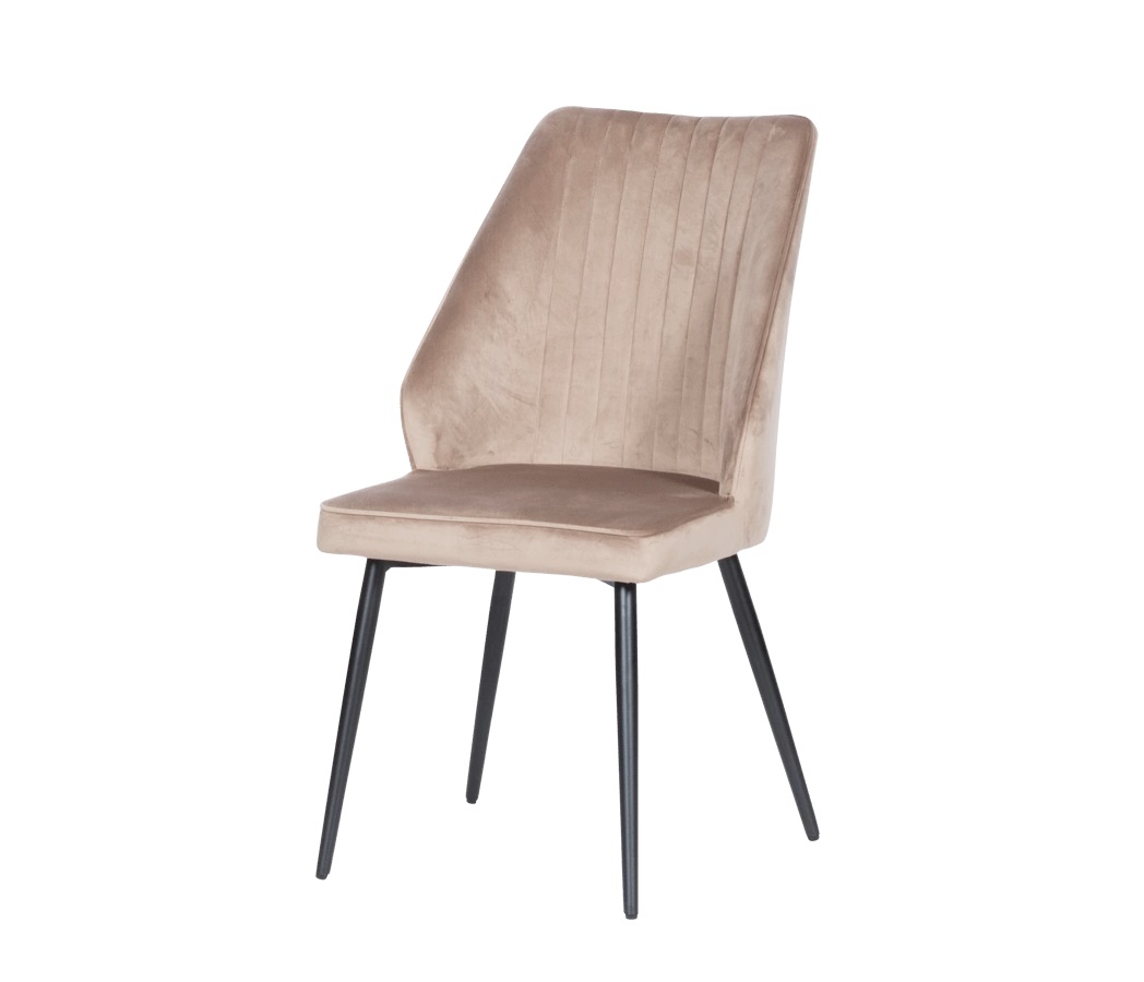 Трапезен стол с метални крака в черен цвят и дамаска в бежов цвят с размер 48/63/89 см.