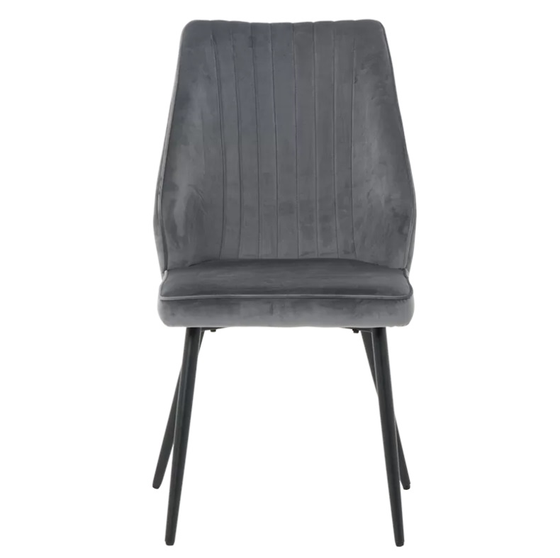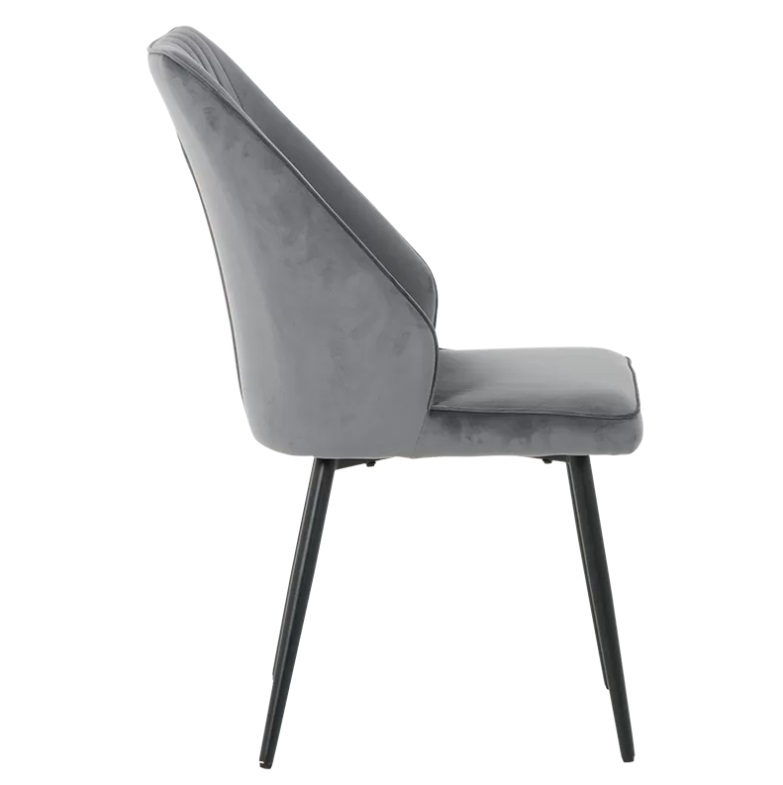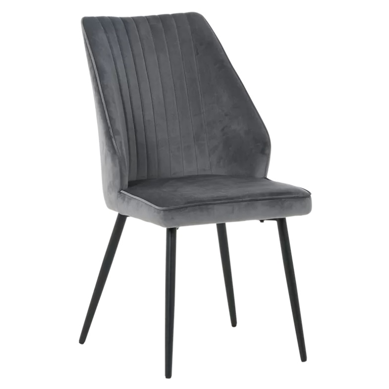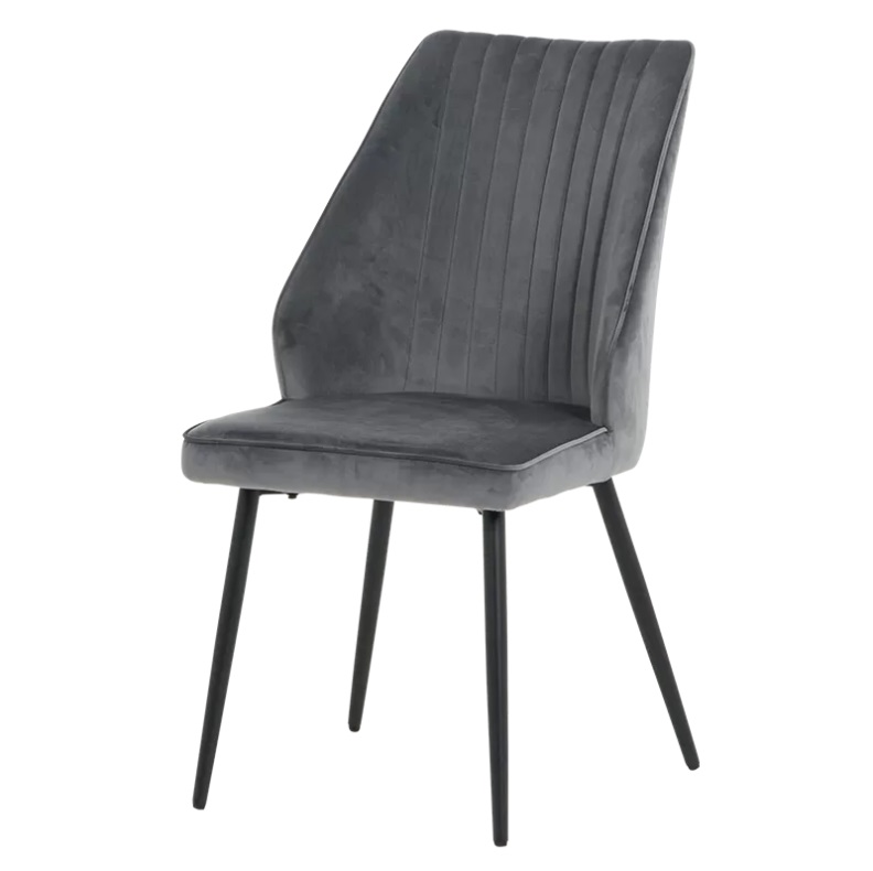 Трапезен стол с метални крака в черен цвят и дамаска в сив цвят с размер 48/63/89 см.