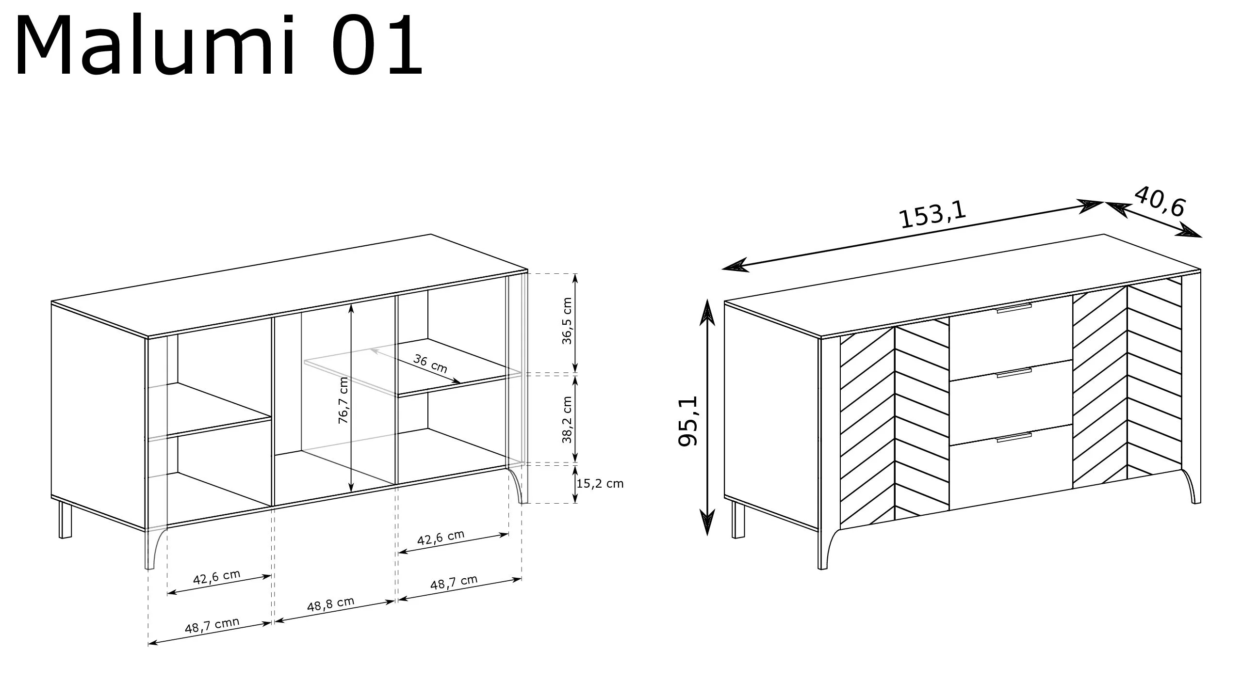 Malumi MM-1 Скрин с две врати и три чекмеджета