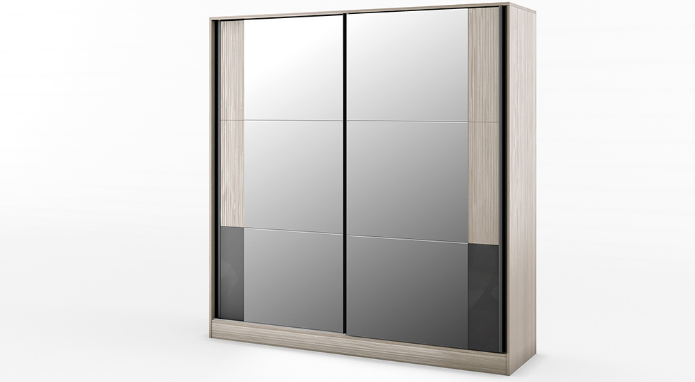 Функционален гардероб с две плъзгащи врати от колекция за обзавеждане на спалня и юношеска стая Маями, изработен изцяло от МДФ кварц с меламиново покритие, МДФ Антрацит гланци и огледала на вратите. Механизмите за плавно затваряне осигуряват допълнителен комфорт при ежедневна употреба. Размер: 200/55/207 см.