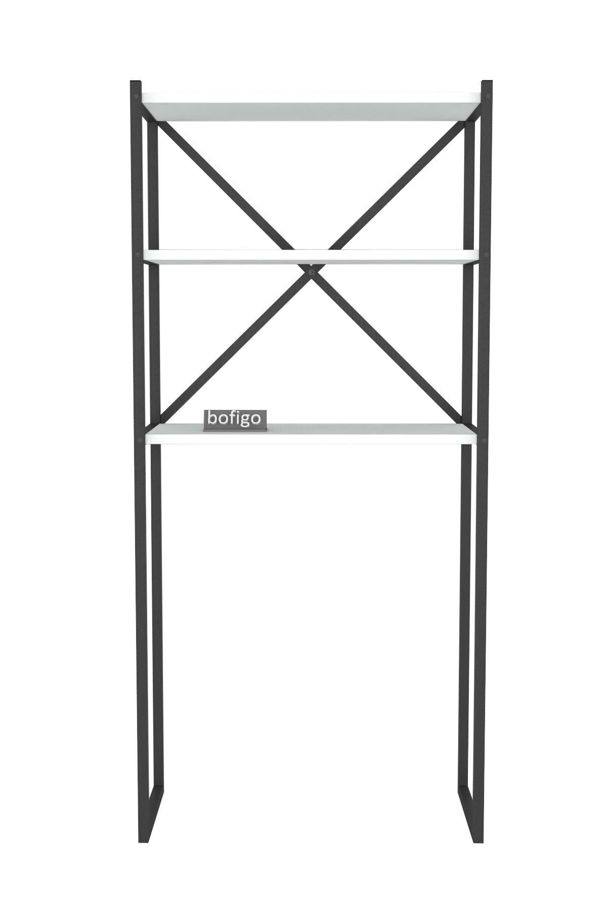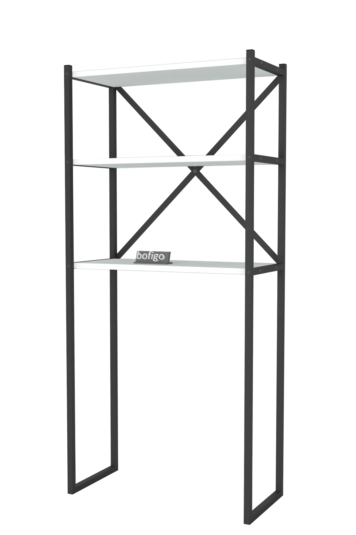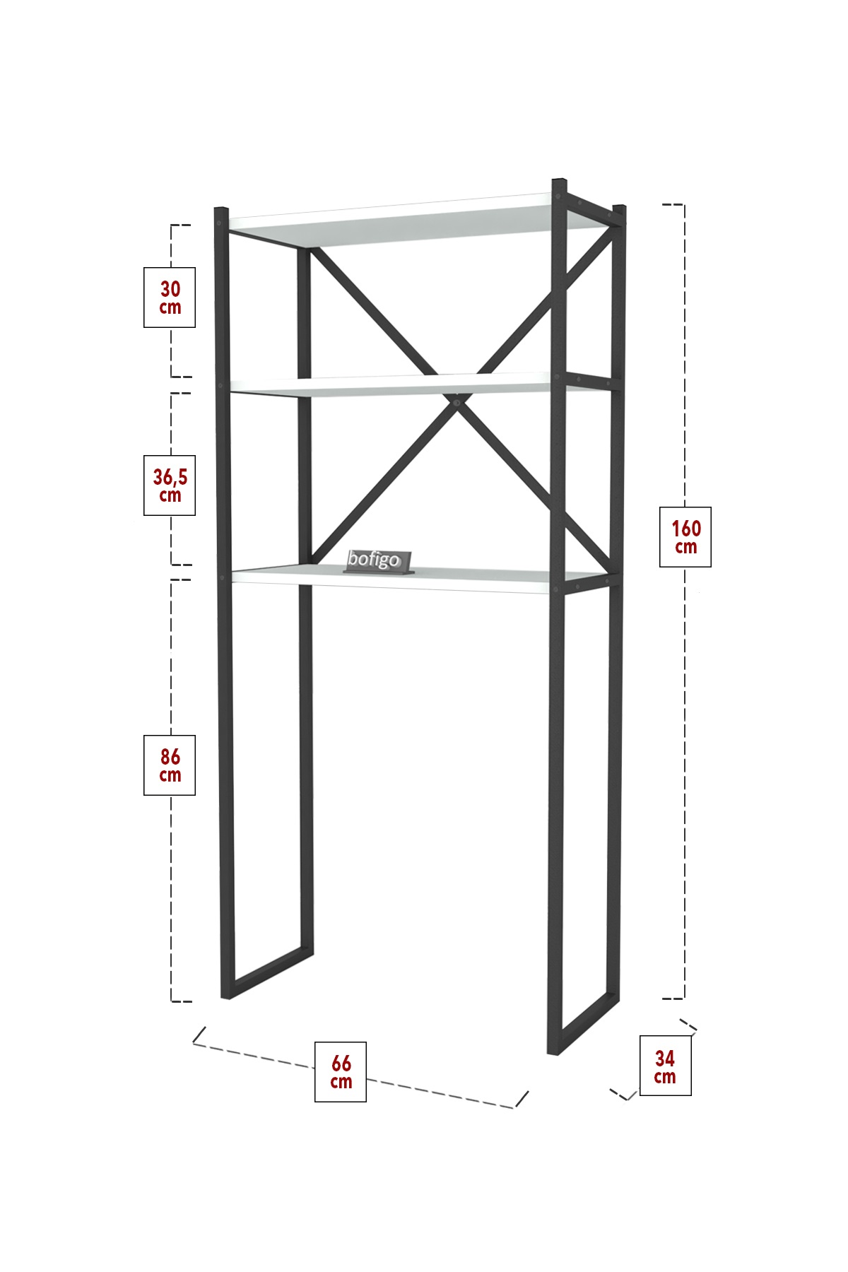 Етажерка с място за пералня и три рафта. Изработена е от метал и ПДЧ. Размер: 66/34/160 см.
