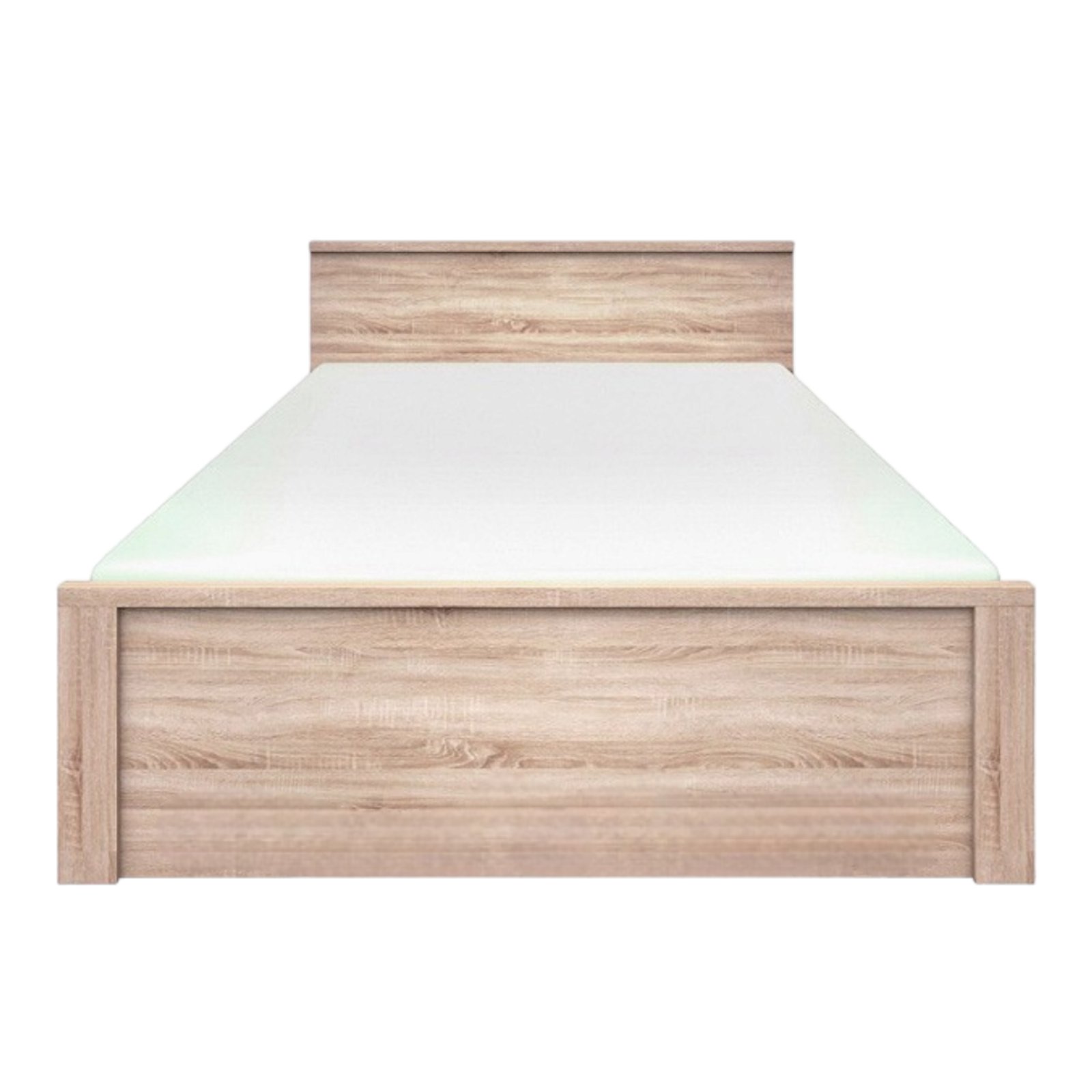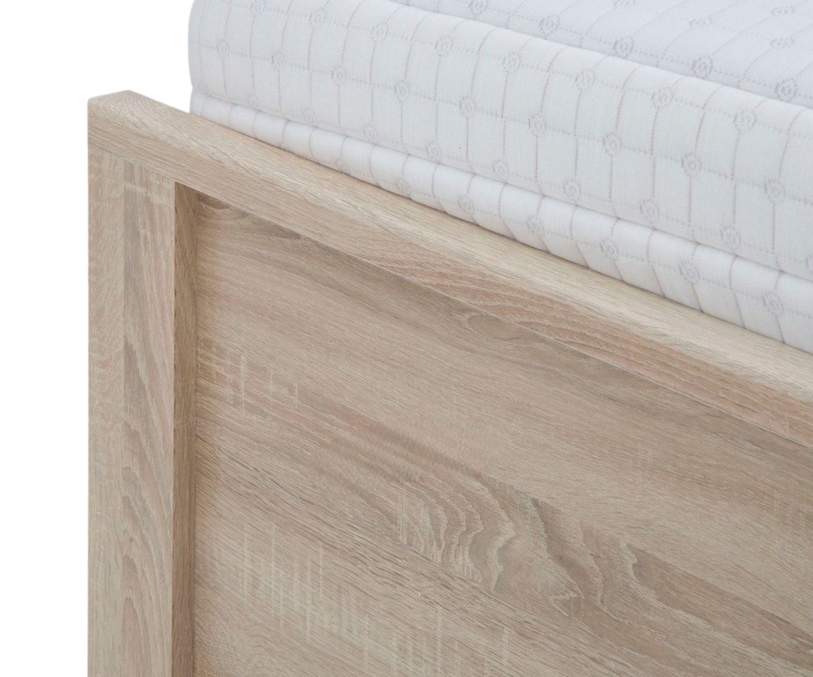 Легло за двулицев матрак 140/200 в цвят светла сонома, изработено от ПДЧ с елементи от МДФ. Леглото има включена подматрачна рамка и е подходящо само за двулицев матрак.