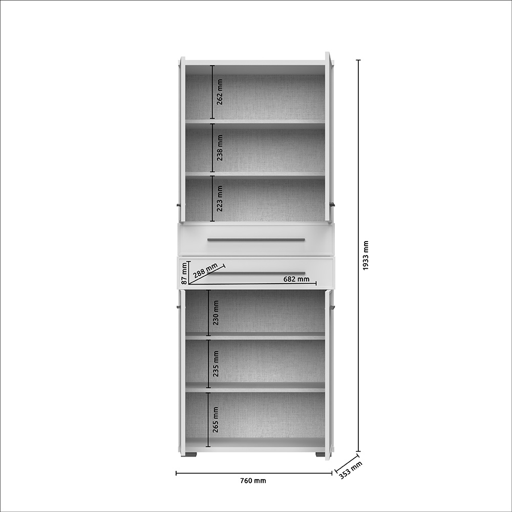 Корпус ПДЧ с дебелина 18 мм, лакиран с UV лак. Лицева част с дебелина 19мм, лакирана с UV лак, висококачествен обков, матирани дръжки.