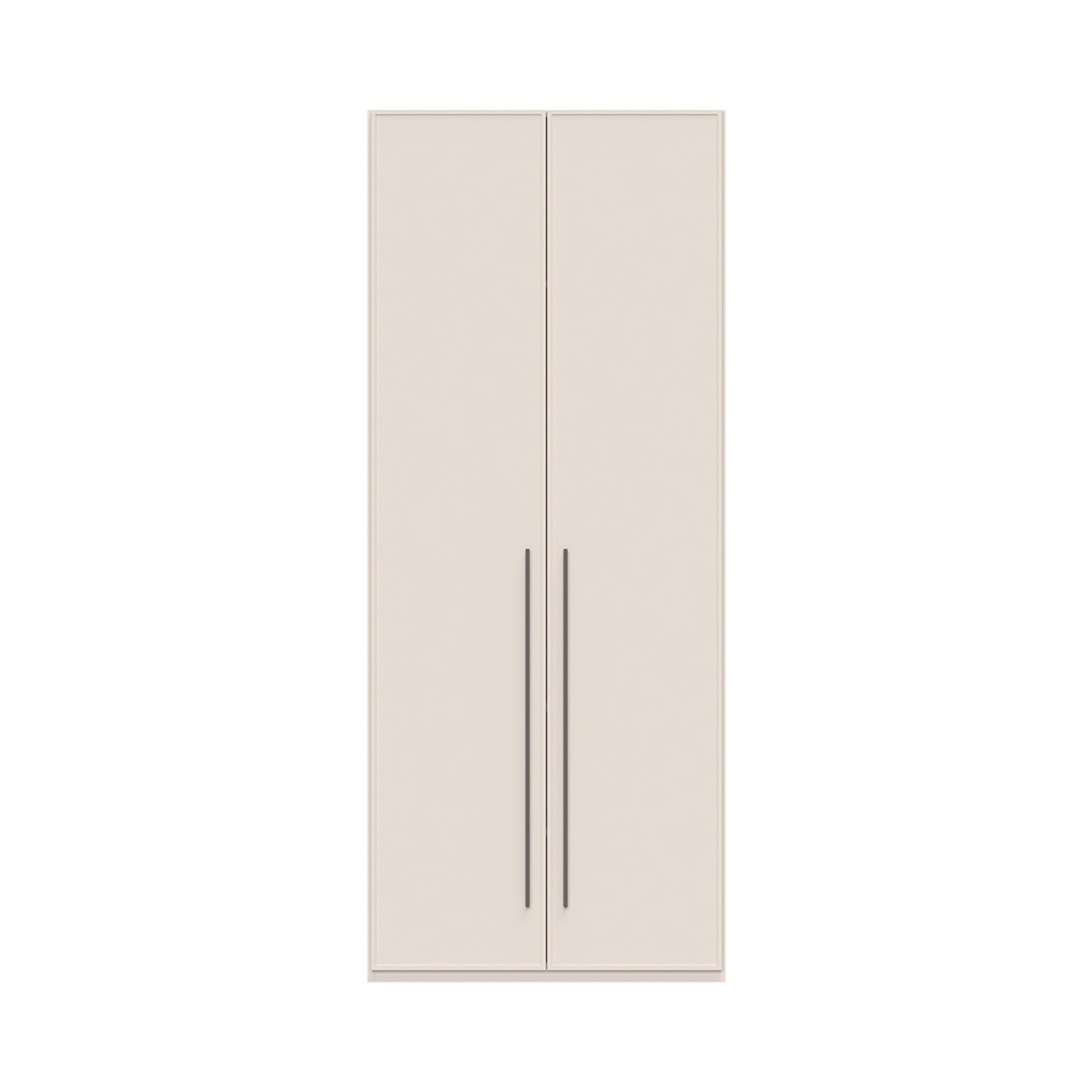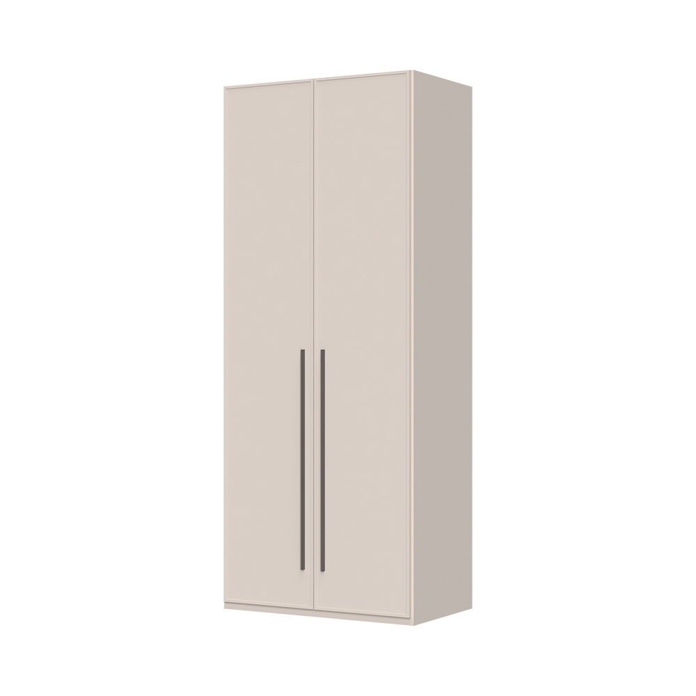 Функционален гардероб с две врати от колекция Опера. Корпус и лицева част (декоративна профилирана MDF рамка) лакирани с мек матов UV лак в цвят Кашмир. Вътрешната част е в цвят текстил. Пантите за плавно затваряне осигуряват допълнителен комфорт при ежедневна употреба.
