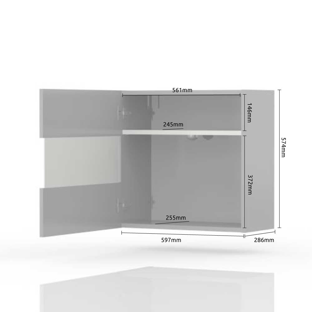 Шкаф за стена с една стъклена врата от Колекция Пиано. Всички видими повърхности са покрити с UV лак, четири пъти по-устойчив на физически повреди в сравнение със стандартното лакиране.