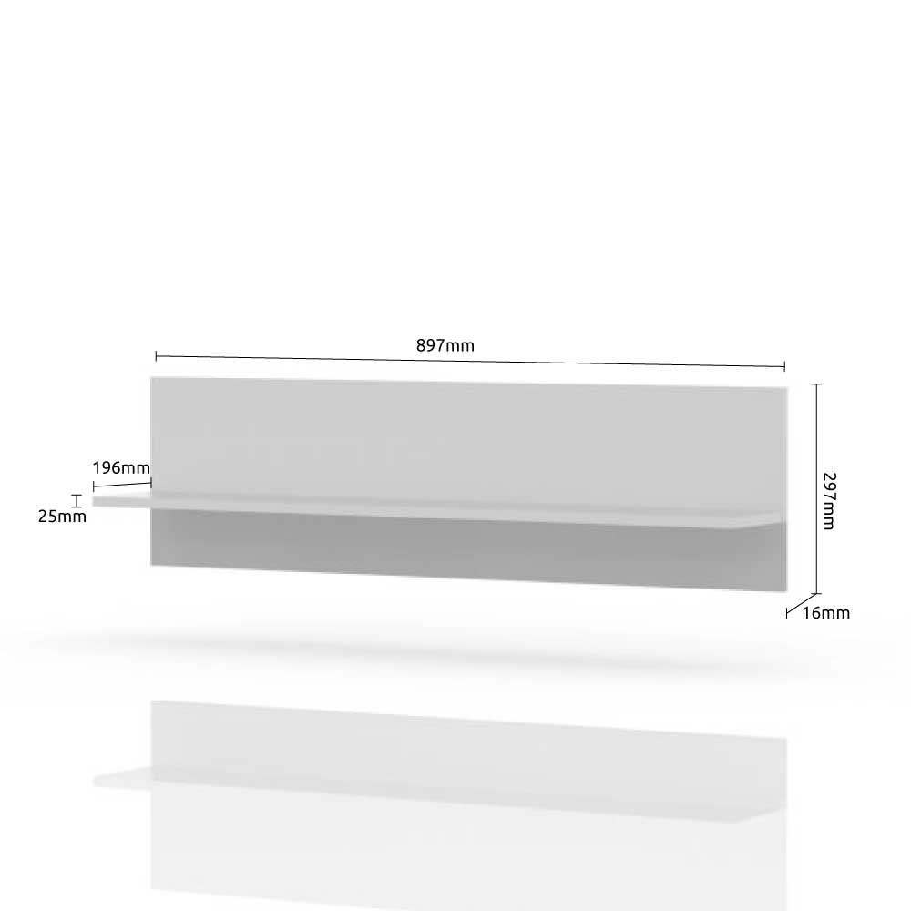 Рафт за окачване от Колекция Пиано, широк 90 см, изцяло лакиран по последна UV технология. Елементът е оборудван с необходимия обков за окачване.