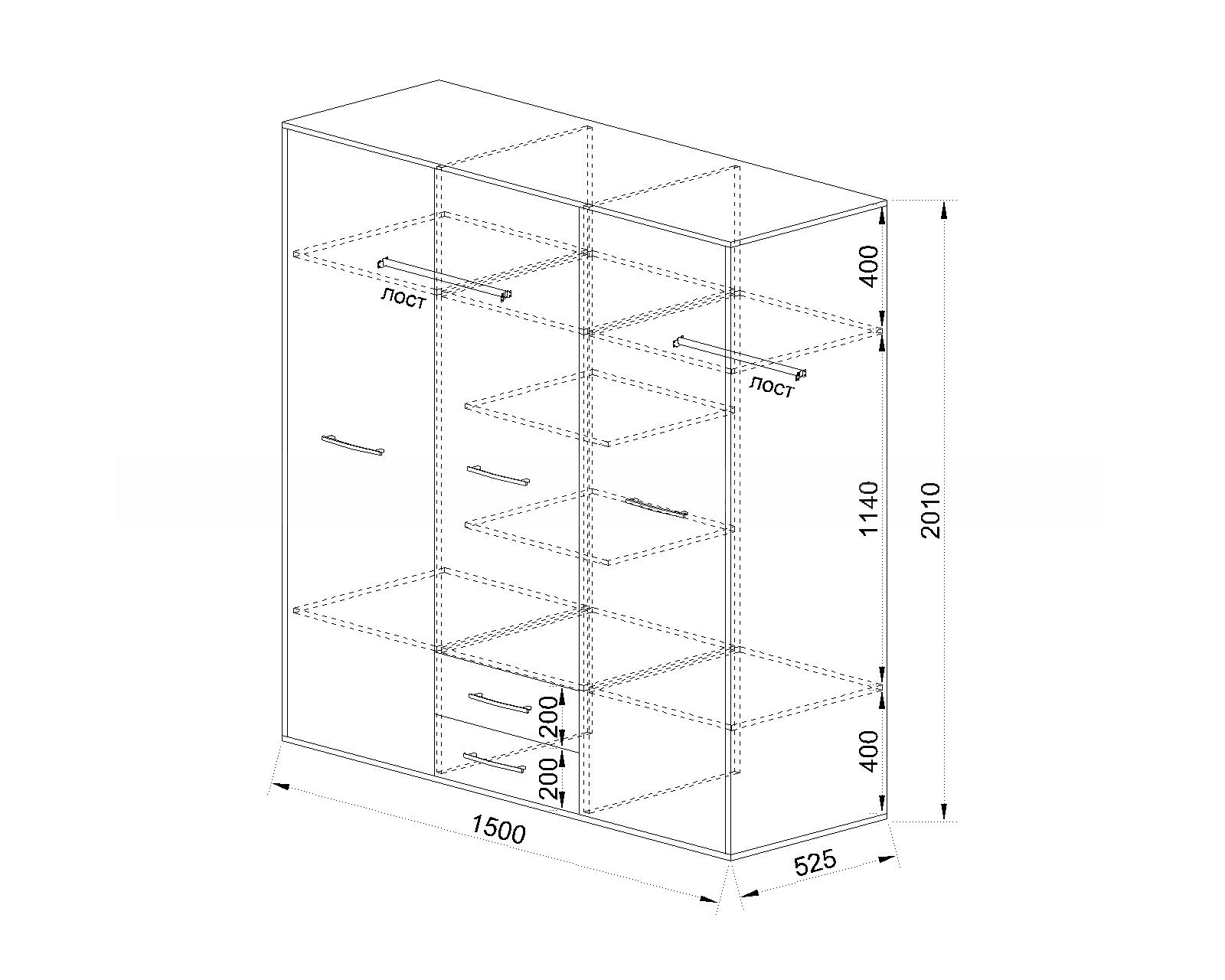 Сити 1038 Гардероб с три врати и две чекмеджета