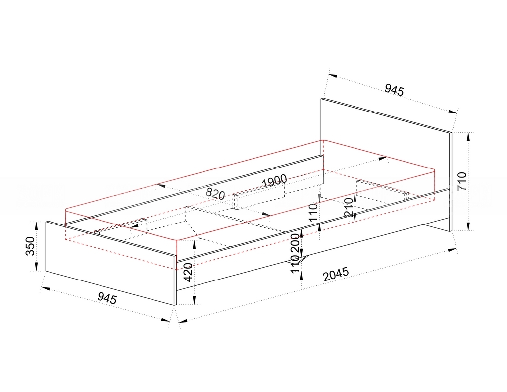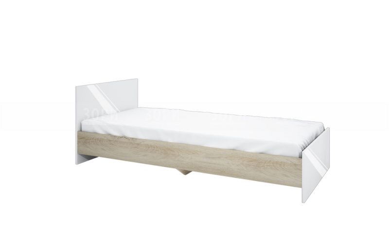 Единично легло без механизъм за повдигане, за матрак с размер 90/200. Изработено е от ПДЧ 16мм в цвят сонома арвен и бяло гланц хайглос. Има възможност за поставяне на ламелна рамка и двулицев матрак, и тапицерия за табла Сити 2031 или Сити 2032.