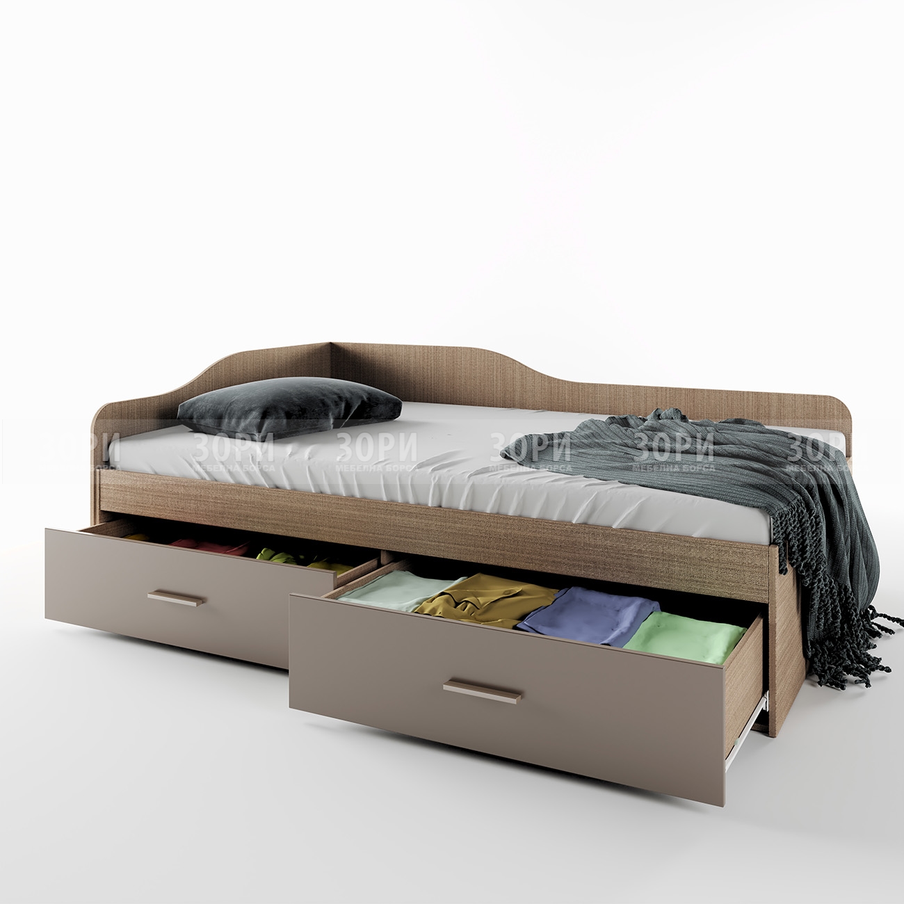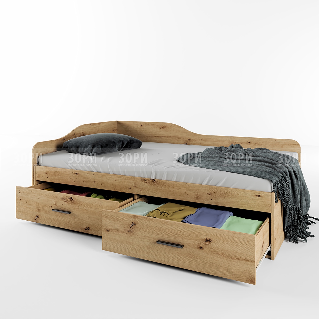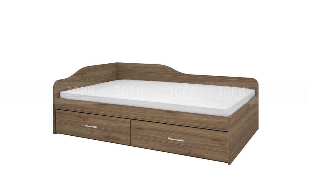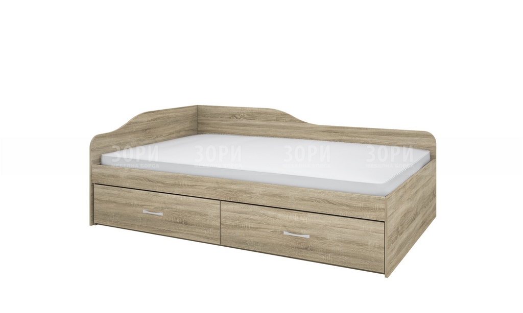 Легло с две извити табли и две чекмеджета за матрак 120/190. Изработено е от ПДЧ 16мм в цвят сонома арвен и бяло гланц хайглос. Има възможност за поставяне на ламелна рамка и двулицев матрак. Височина на луба на леглото 40см. Размер: 196/125/71 см.