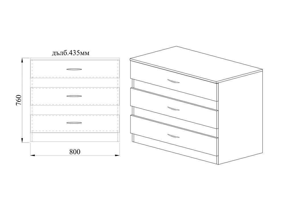 Скрин Сити 3045 с три чекмеджета, с ролкови водачи. Изработен от ПДЧ с дебелина 16мм, цвят дъб какао и кестен вирджиния. Размер: 80/43,5/76 см.