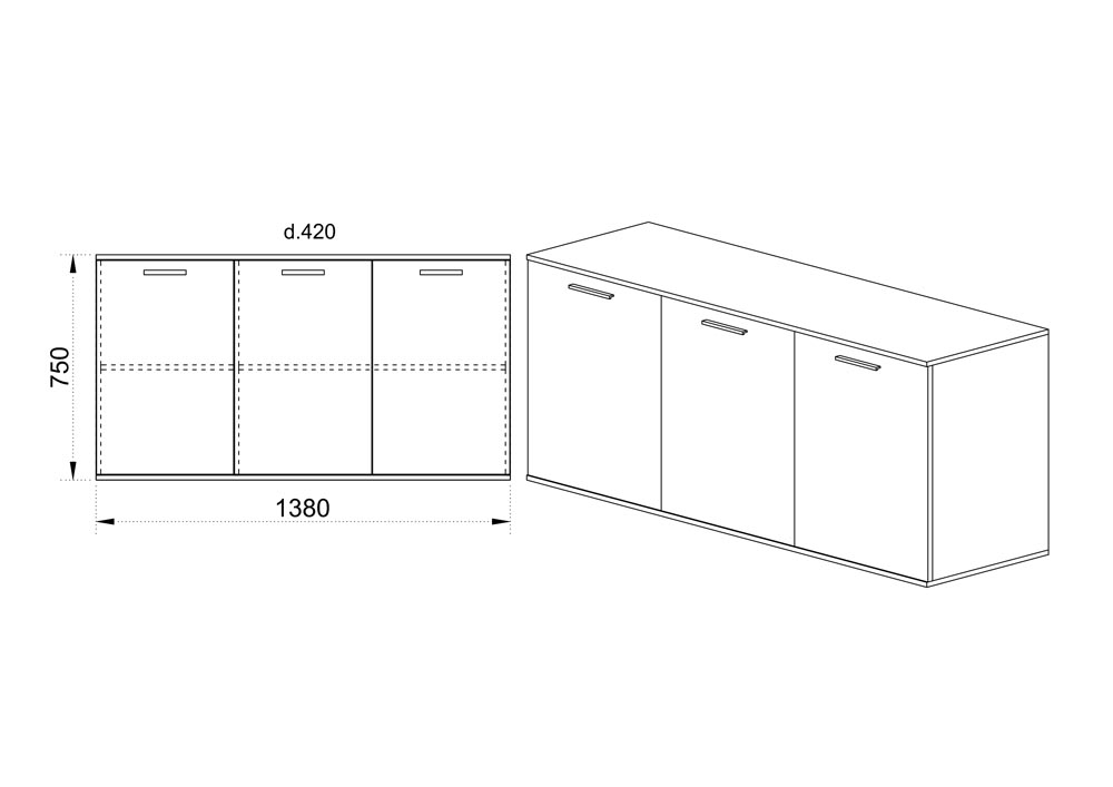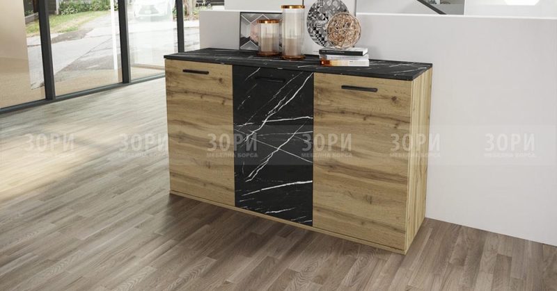Шкаф с три врати, изработен от ПДЧ с дебелина 16мм в цвят дъб дакота и черен мрамор. Може да бъде страхотно допълнение към Секция Сити 6057. Размер: 138/42,5/76 см.