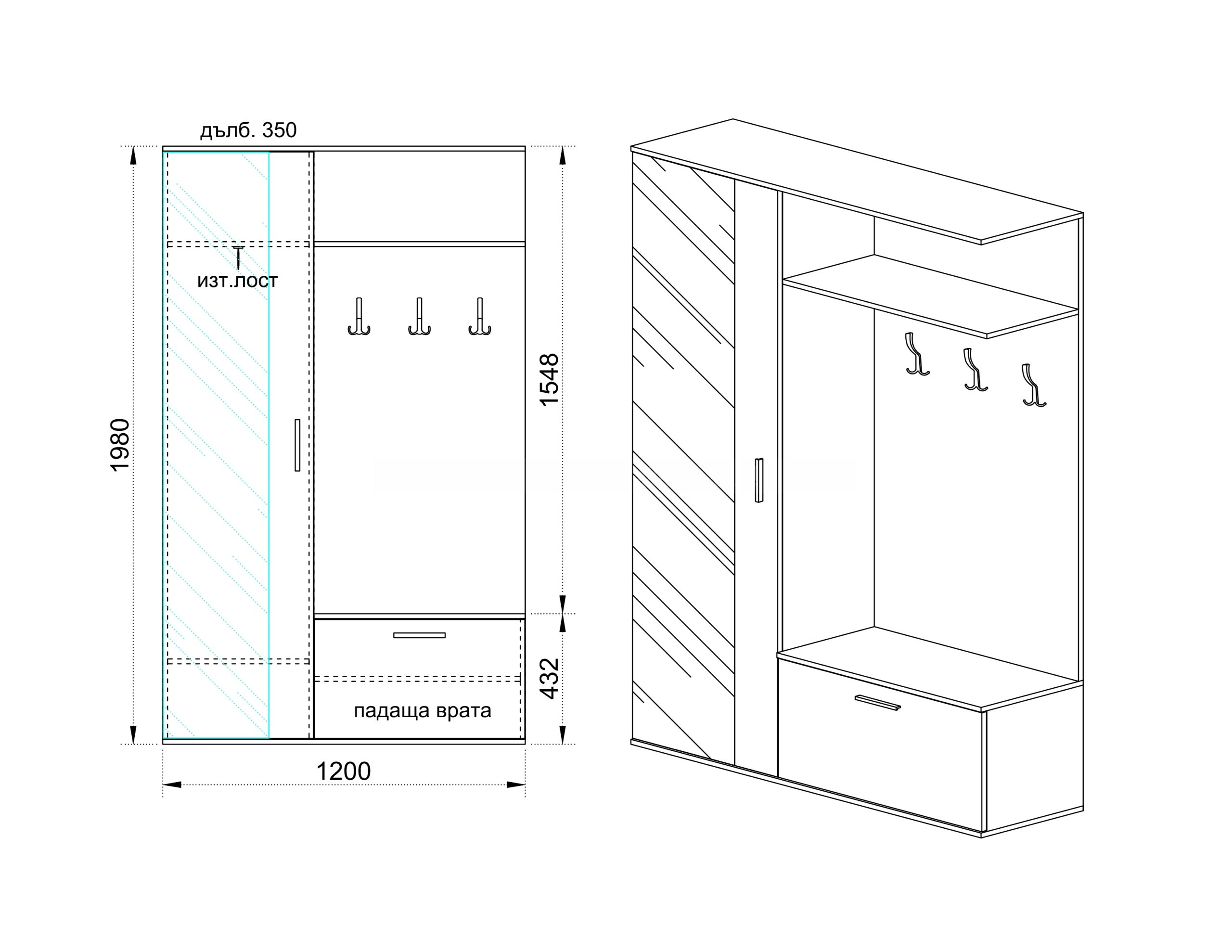 Размери120 × 35,5 × 199 см