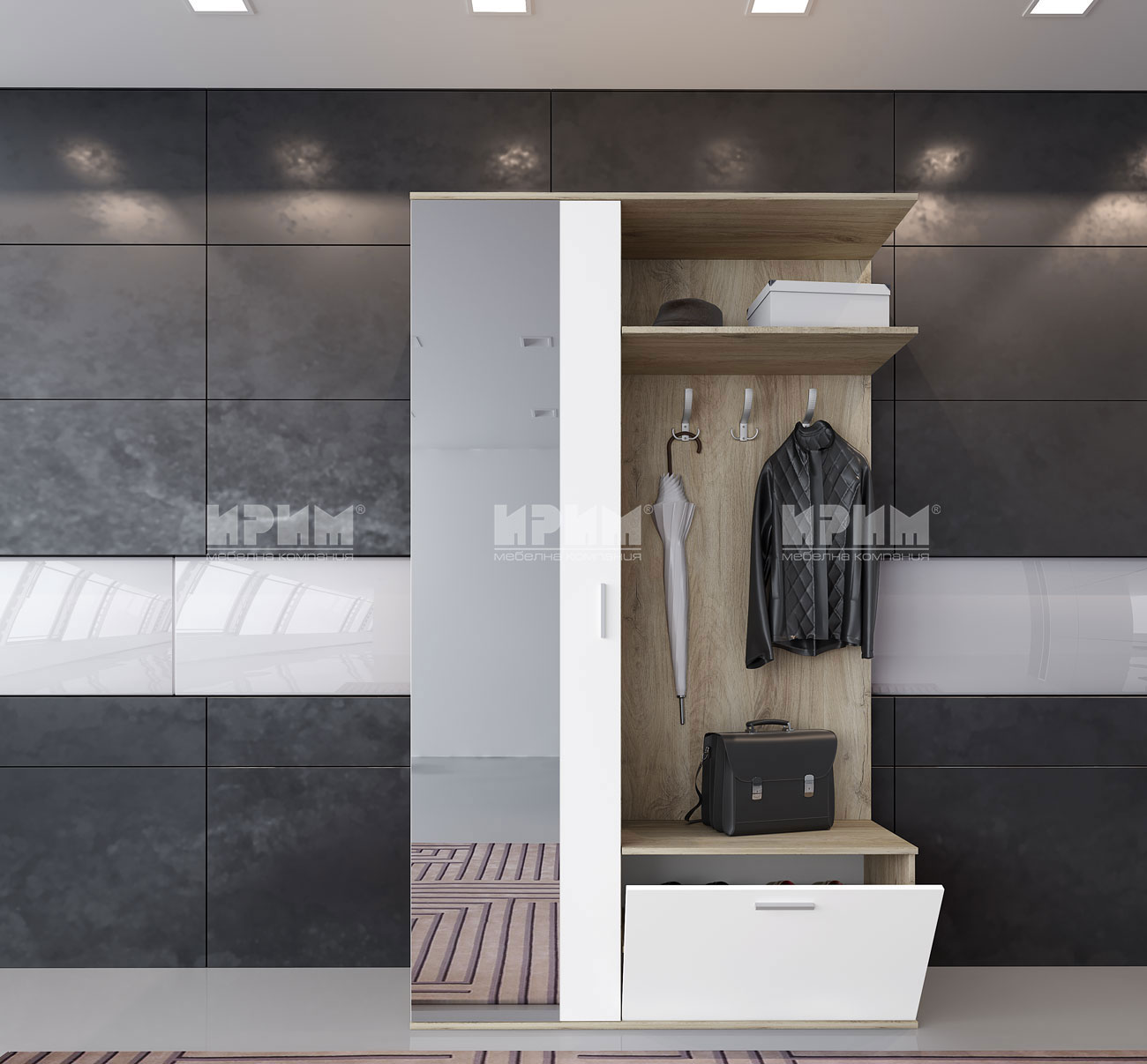 Портманто Сити 4006 е изработено от ПДЧ с дебелина 16мм в цвят сонома арвен и бяло гладко. Размер: 120/35.5/199 см.