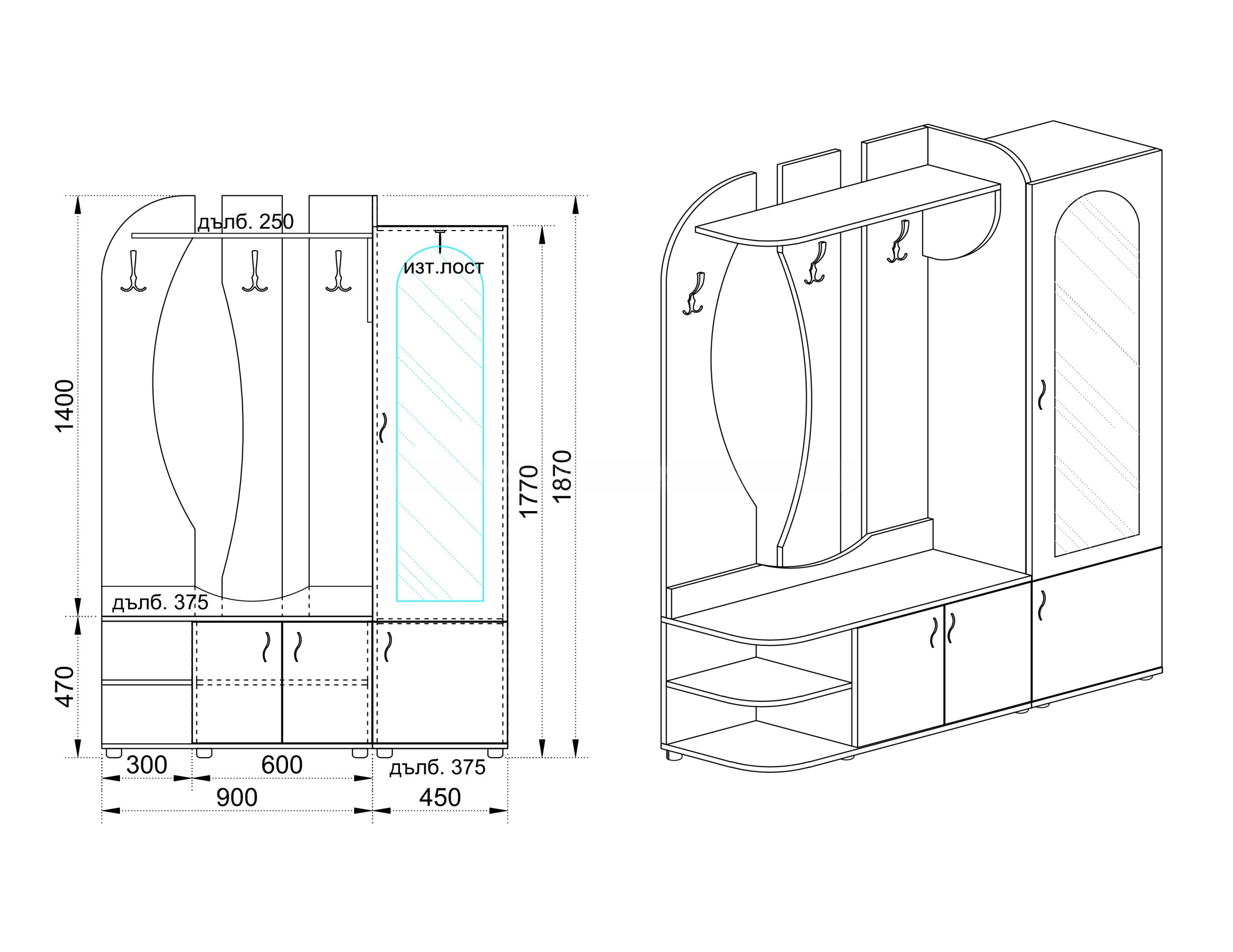 Портманто Сити 4037 е изработено от ПДЧ с дебелина 16мм в цвят дъб дакота и бяло гладко. Размер: 135/37.5/187 см.