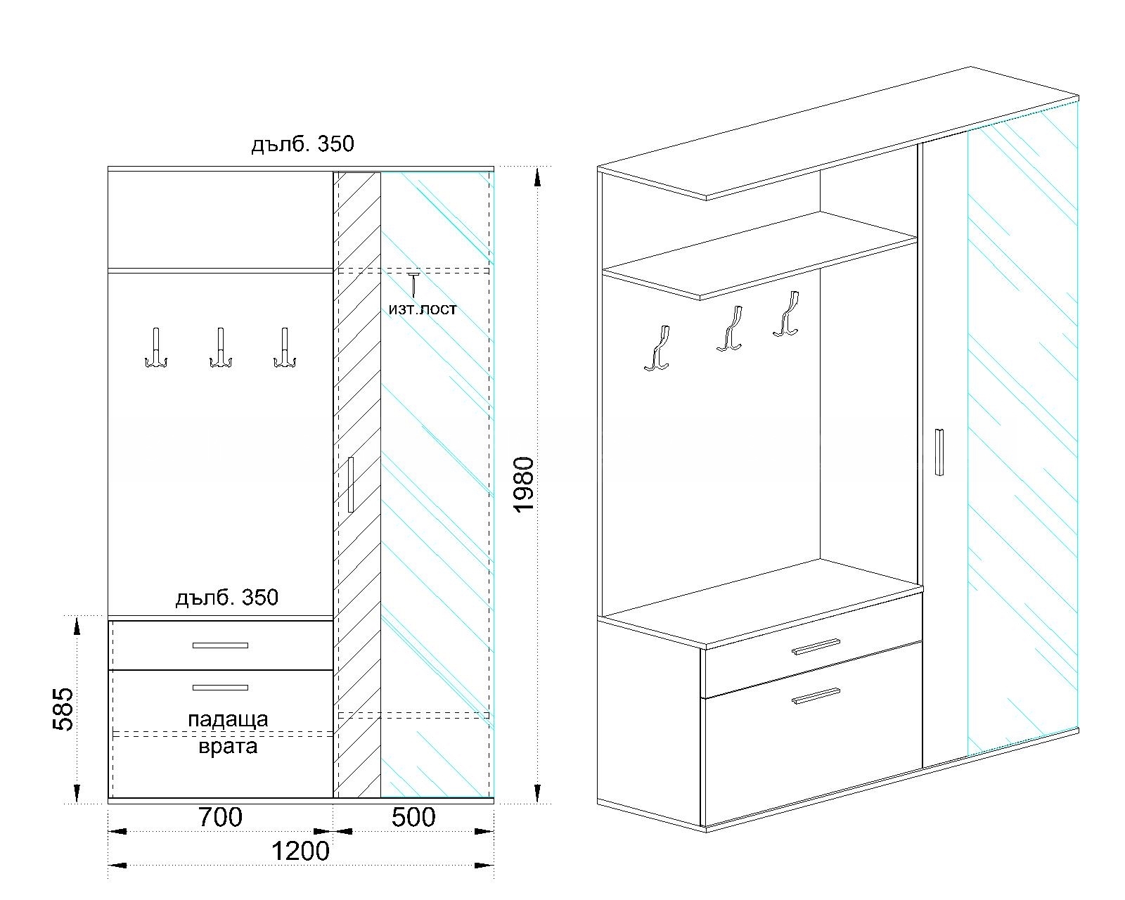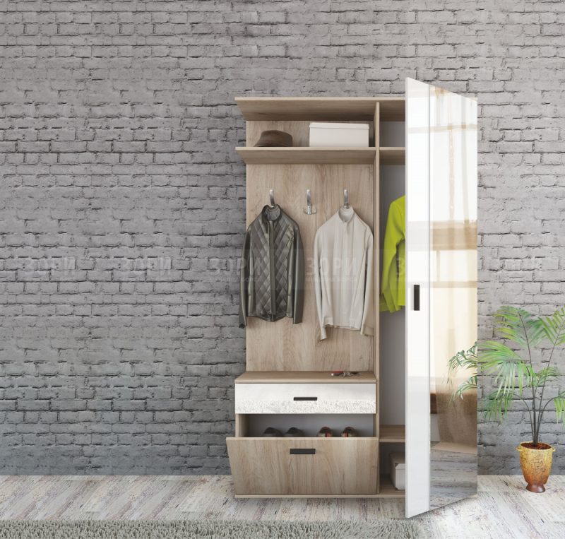 Портманто Сити 4055 е удобно и функционално, изработено от ПДЧ и МДФ с дебелина 16мм в цвят сонома арвен и бяло гланц. Размер: 120/35.5/199 см.