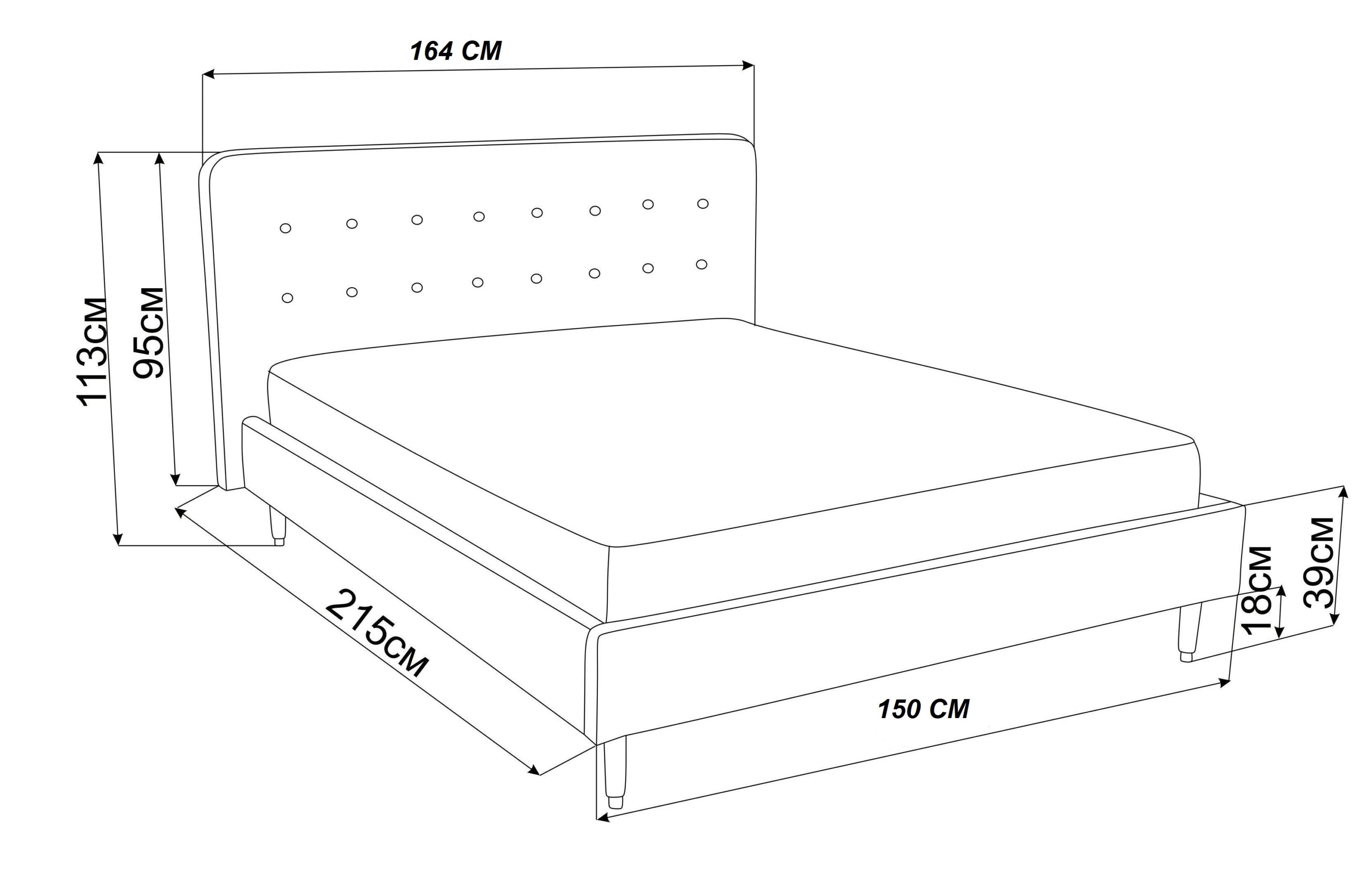 Размер: 164/215/113 см, за матрак еднолицев или двулицев с размер 140/200 см.