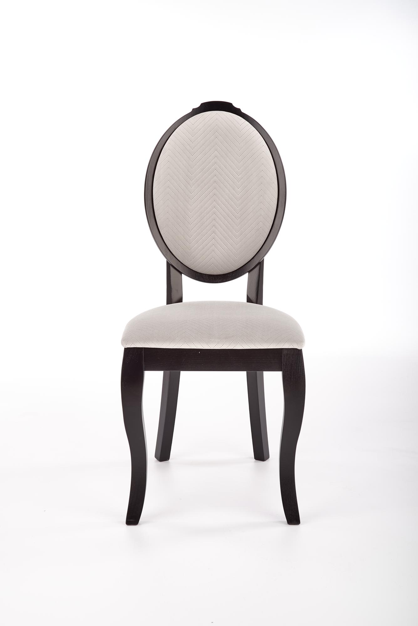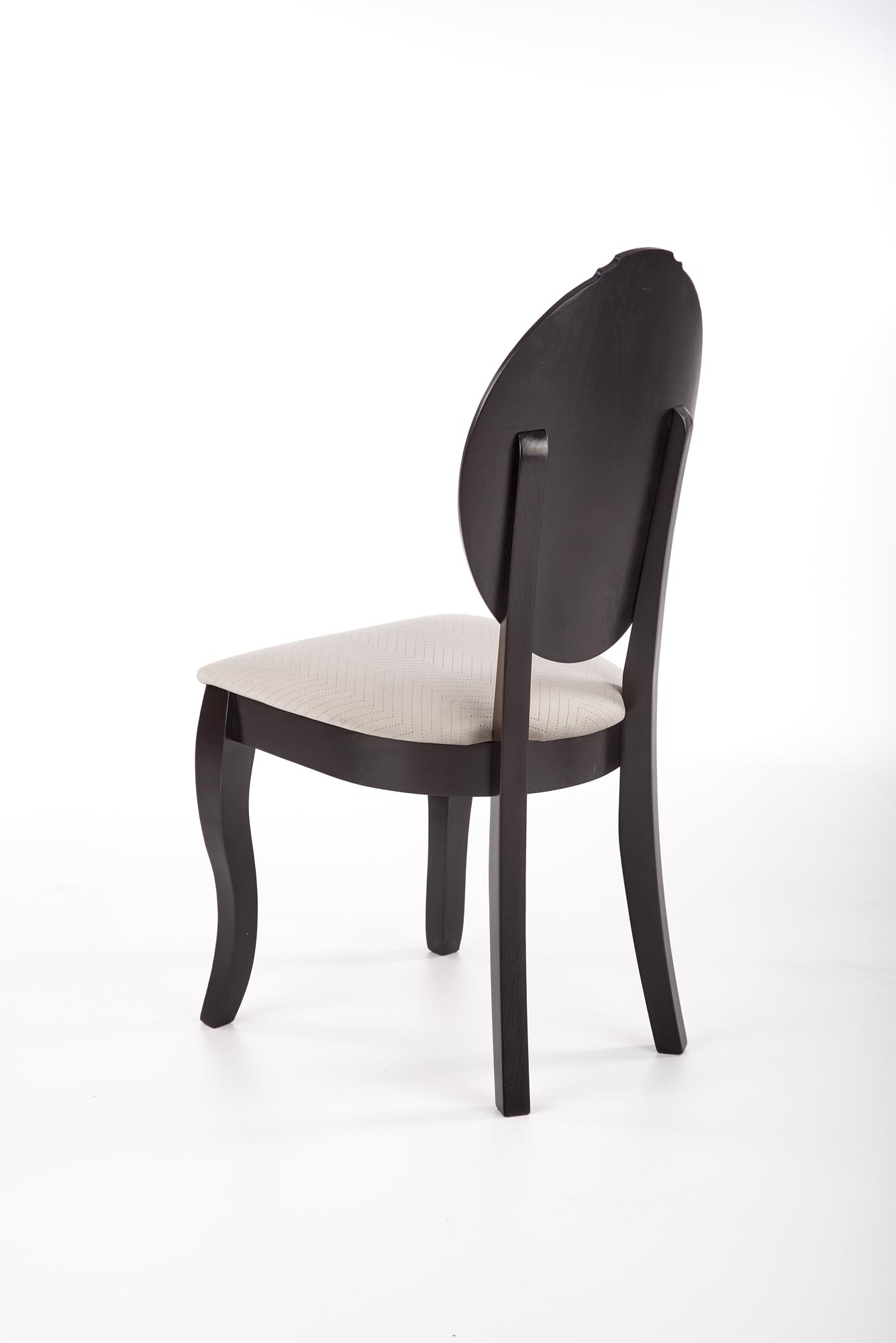 Трапезен стол изработен от масив в черно и дамаска в бежов цвят, с размер 44/56/96 см.