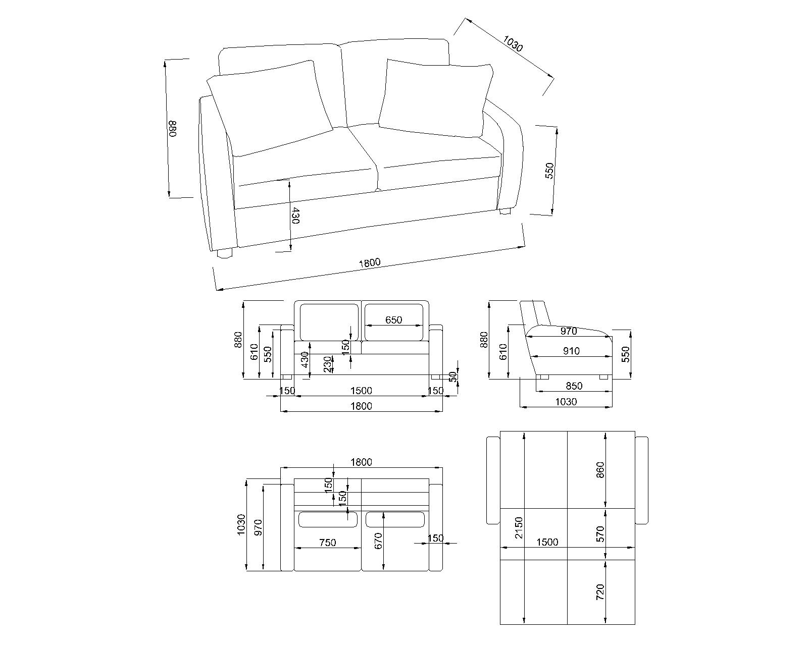 Конструкция е изработена от иглолистна дървесина и ПДЧ. Седалната част е с рамка от масив с колани и дунапрен 8 см, възглавници с цип и пълнеж от силиконов пух. Тапицерията е с висококачествен плат Totem 411 и 415.