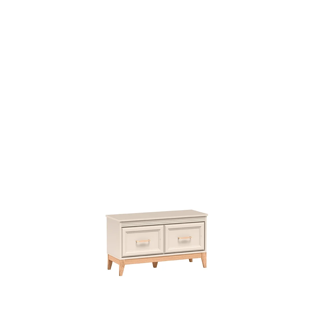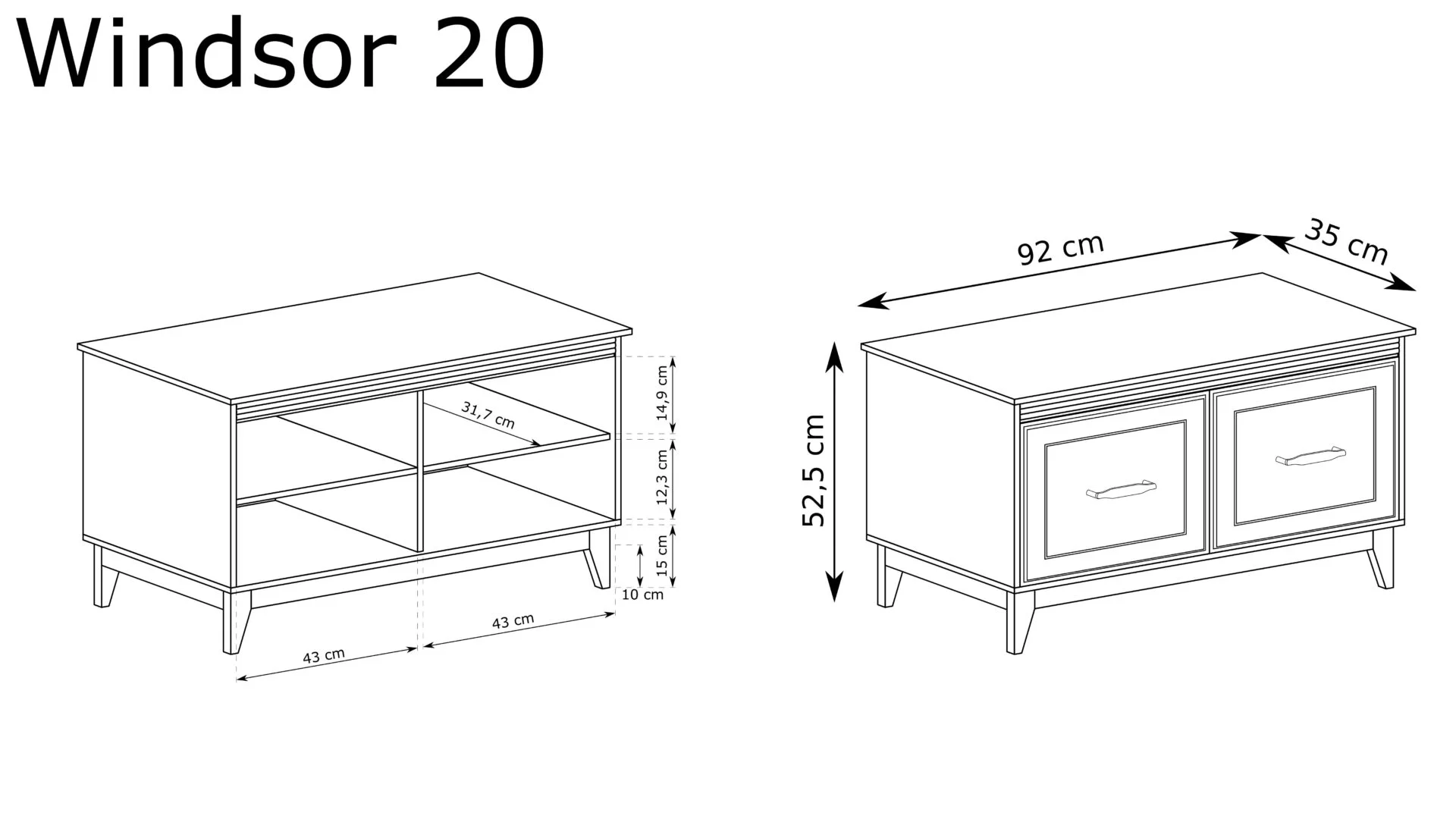 Windsor елегантно съчетава класически дизайн с модерна функционалност. Шкаф за обувки с две врати с плавно затваряне. Изработен от ПДЧ с дебелина 16мм и 22мм, лицева част от МДФ и крака от масив. Топло съчетание на цветове кашмир и дъб евок. Размер: 92/35/52 см.